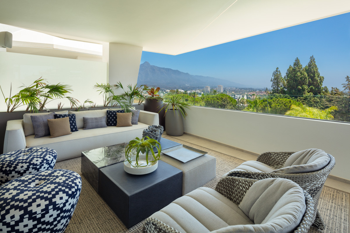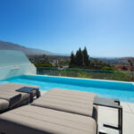 This property boasts numerous covered terraces, providing an ideal setting for outdoor alfresco dining and relaxation, enabling residents to relish the outdoors even during brief rain showers. An inviting private pool further enhances its allure, while the bespoke solarium offers panoramic vistas of Nueva Andalucia, La Concha, the Mediterranean Sea, and Gibraltar. Bathed in sunlight throughout the day due to its south/western orientation, the villa provides a backdrop for breathtaking sunsets.