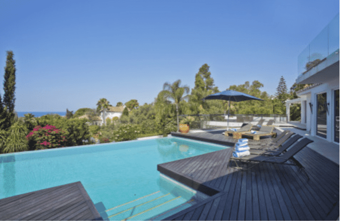 A stunning 7 bedroom villa has just been put on the market in the highly sought after residential area of Las Chapas, east of Marbella. The impressive villa sits on a 2,637m2 plot in an elevated location, enjoying stunning panoramic views over the exuberant tropical gardens, the crystal clear infinity pool and a carpet of green, wooded area down to the glistening Mediterranean below. -of the. The villa spans 554m2 of immaculate contemporary living space, plus 210m2 of terraces, opening up the entire property with expansive floor-to-ceiling windows overlooking the crystal clear waters of the infinity pool and the vistas. green areas that surround the entire property. Completely renovated and recently refurbished, the house exudes modern, minimalist luxury. Designed for leisure, this property is ideal for...