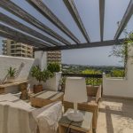 Nestled in the prestigious area of Rio Real, Marbella East, this exquisite penthouse offers a harmonious blend of elegance and comfort. With a generous built area of 247m², this property is designed to provide a luxurious living experience. The penthouse features two spacious bedrooms and two well-appointed bathrooms, making it an ideal choice for those seeking a serene retreat in the heart of Marbella. The interior of the penthouse is meticulously crafted to the highest standards, featuring a fully fitted kitchen and a cosy living room complete with a fireplace, perfect for relaxing evenings. The marble floors add a touch of sophistication, while the air conditioning ensures comfort throughout the year. The dining room is designed for both intimate dinners and entertaining guests, complemented by electric blinds and fitted wardrobes that enhance the functionality of the space. One of the standout features of this property is the expansive terrace, measuring 100m², which offers a private sanctuary to enjoy the stunning views of the surrounding area. The covered terrace provides a perfect setting for outdoor dining or simply unwinding while taking in the Mediterranean breeze. Residents can also benefit from the communal garden, adding a touch of greenery to the urban setting. Located in a gated community, this penthouse ensures privacy and security, while being conveniently close to a variety of amenities. Its proximity to the sea, golf courses, shops, town centre, port, and schools makes it an ideal location for both leisure and everyday living. The property is in excellent condition and benefits from mains electricity and water supply, along with a private garage and a storage room, providing ample space for all your needs.