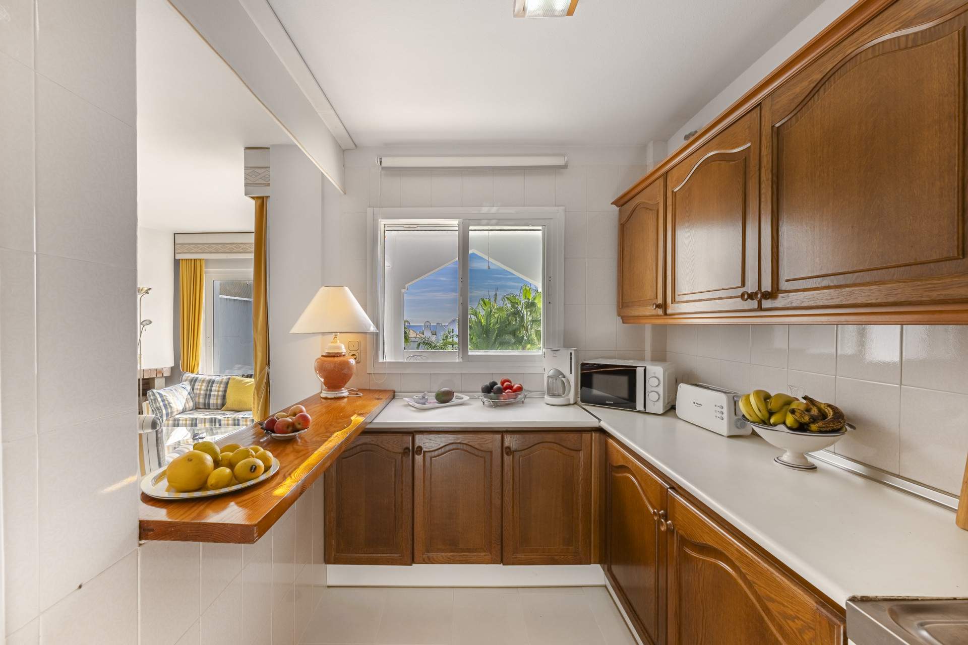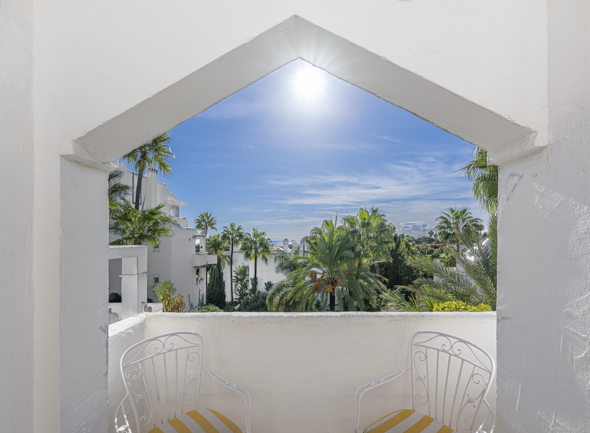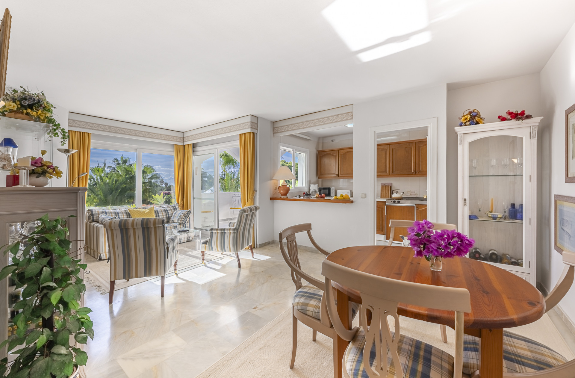 A rare opportunity in Marbella / Las Chapas – just 1,600 metres from the famous Cabopino Dunes, this sunny penthouse with two bedrooms and one bathroom enjoys an ideal southwest orientation and offers beautiful views over the lush tropical gardens towards the sea. The bright living area exudes a warm Mediterranean atmosphere, featuring a cozy fireplace and a partly open kitchen that blends seamlessly with the space. The property is in good condition, and a tasteful refurbishment would further enhance its comfort and investment value. A true highlight of this home is the spacious southwest-facing terrace, perfect for enjoying spectacular sunsets and abundant sunshine throughout the winter months – an inviting retreat for relaxation or entertaining. The residence is located within a well-maintained gated community in the sought-after Artola / Las Chapas area, close to all amenities. Elviria is only a three-minute drive away, the beaches and dunes of Cabopino are nearby, and a supermarket is within just one kilometre. The centre of Marbella can be reached comfortably in around ten minutes by car. The community offers beautifully landscaped tropical gardens, two swimming pools (for adults and children), and a communal barbecue area. A private covered parking space is included, with additional parking available at the entrance to the complex. This property represents a fantastic investment opportunity – ideal as a holiday home, a rental property, or a permanent residence. Its combination of location, views, and potential makes it a truly special find on Marbella’s east side. Property details: Living area: approx. 60 m² Terrace: approx. 11 m² Total built: approx. 71 m² For further information or to arrange a viewing, please contact us. Show Less