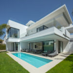 introducing a masterpiece of contemporary living in the prestigious Rio Verde area, nestled along the beachside of the Marbella Golden Mile. These modern villa epitomize coastal elegance with their sleek architectural lines and the iconic white exterior reminiscent of traditional coastal homes. The contemporary kitchen is a fusion of style and functionality, providing ample storage and a seamless flow to the expansive outdoor spaces - a true sanctuary for year-round enjoyment of Marbella's delightful climate. inside, the interiors exude an air of elegance and sophistication, adorned in a soothing palette that creates a tranquil atmosphere. This villa offers generously proportioned spaces and a host of lavish amenities. Boasting 3 bedrooms, each exuding its own unique allure and featuring direct access to a private terrace. The open-plan living areas effortlessly connect with the outdoor terraces and gardens, creating an idyllic setting for entertaining guests and savoring the Mediterranean lifestyle. This villa is a true modern gem by the sea, promising luxurious contemporary living in an unparalleled location.