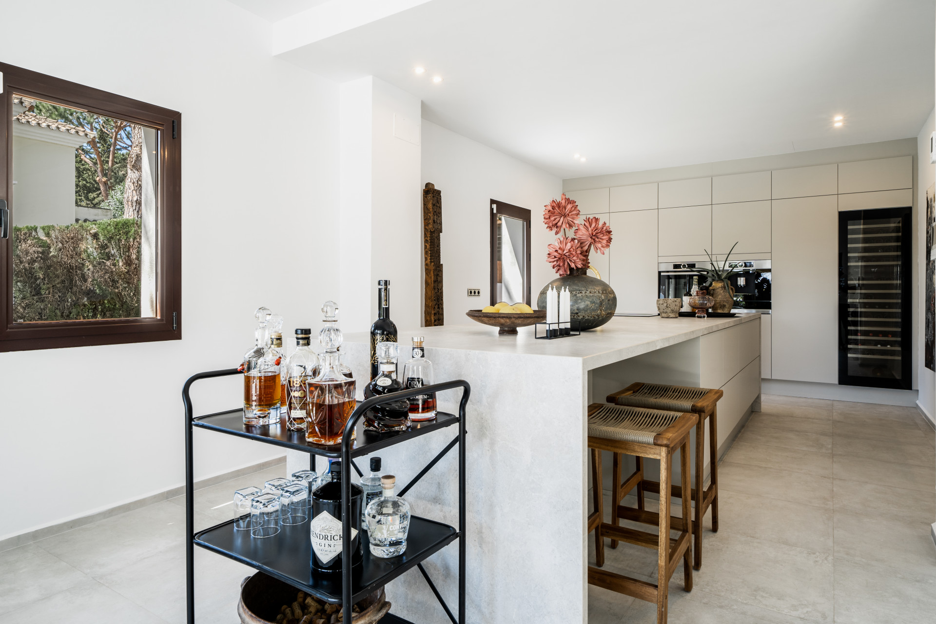 Recently updated, this residence seamlessly blends contemporary elements with the original Spanish Cortijo design, offering glimpses of the sea. Nestled in the esteemed Hacienda Las Chapas residential area with round-the-clock security, it's a mere 10-minute drive from Marbella and a half-hour from Malaga airport. Plus, it's conveniently situated near stunning beaches, shops, schools, restaurants, and golf courses, with easy highway access.
