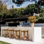 The main floor boasts an elegant living space with a dining area, a TV room, and an open, fully-equipped kitchen. A covered terrace extends into a generous lounge and sitting area, flowing seamlessly into a meticulously manicured garden. This outdoor oasis includes a decked area, an outdoor kitchen, a bar, and a fireplace - a perfect setting for hosting gatherings.