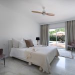 Buying this spectacular family villa is a great opportunity for the worshipers of the most comfortable beachside living. The charming house for sale is located in Marbesa, a quiet and peaceful area of Marbella East, set between vivid Elviria and Cabopino port. It is conveniently located just 100 meters away from the beach, within walking distance of a good choice of chiringuitos and beach clubs. All other amenities, golf courses, tennis clubs, excellent international schools, recreational activities, hospitals, supermarkets, Marbella Centre and glamorous Puerto Banus are just a short drive away, the house? Surrounded by green zones, pine groves and traditional and modern style luxury properties of the prestigious area, the lovely villa of 322m2 with 188 m2 terraces sits on a generous plot of 1.857 m2. It exposes the Mediterranean architecture where traditional style is enriched by unique Andalusian charm. Oriented to the south, the house enjoys serene views to the lush greenery, a private swimming pool and partial sea views. It is distributed in one floor, apart from a solarium upstairs. It features a cosy living room, a fully-fitted kitchen, 5 bedrooms, 5 bathrooms and a guest toilet, a separate guest apartment, storage and laundry rooms, and a garage for 2 cars. The world-famous Mediterranean lifestyle is encouraged by the remarkable covered and sunny terraces with outdoor lounges, al fresco dining and barbecue areas, a saltwater pool with wooden decking, and a solarium surrounded by landscaped subtropical gardens. The high-end property comes for sale in good condition, key-ready and fully furnished, with many luxurious features, including a Jacuzzi, fireplace, marble floors, etc. It benefits from air conditioning and automatic irrigation systems, and has Internet Wi-Fi, fitted wardrobes, glass doors and handicap access. Video entrance, alarm system and surveillance cameras will give you peace of mind. Excellent opportunity to acquire a luxury Mediterranean residence, which will offer you and your family a lifestyle of exceptional comfort!