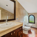 This beautiful “Villa Amaral” is located in one of the most popular areas of the Costa del Sol, in Nueva Andalucía, Marbella. Surrounded by the most prestigious golf courses, such as Los Naranjos, Las Brisas, and Aloha, this villa offers an unparalleled living experience for golf enthusiasts and those seeking a luxurious lifestyle. Built in a Mediterranean style and refurbished in 2015, Villa Amaral retains its Andalusian charm on the exterior while boasting modern touches and high-quality specifications within. The interior features exquisite materials such as marble, iroko wood, and Technal windows with climalit, ensuring both elegance and durability. The villa is thoughtfully distributed across three levels, including a basement. The ground floor comprises a spacious and luxurious living room with a relaxing area and fireplace, a beautiful dining area, a fully equipped kitchen with all necessary appliances, a laundry room, and a storage area. Additionally, this level houses a master bedroom with two en-suite bathrooms, two dressing areas, and an extra private living room. On the first floor, there are four bedrooms, each featuring a dressing area and an en-suite bathroom. The meticulous design and attention to detail in every room ensure comfort and privacy for all residents. Villa Amaral is a perfect blend of traditional Andalusian architecture and contemporary luxury, making it an ideal choice for discerning buyers.