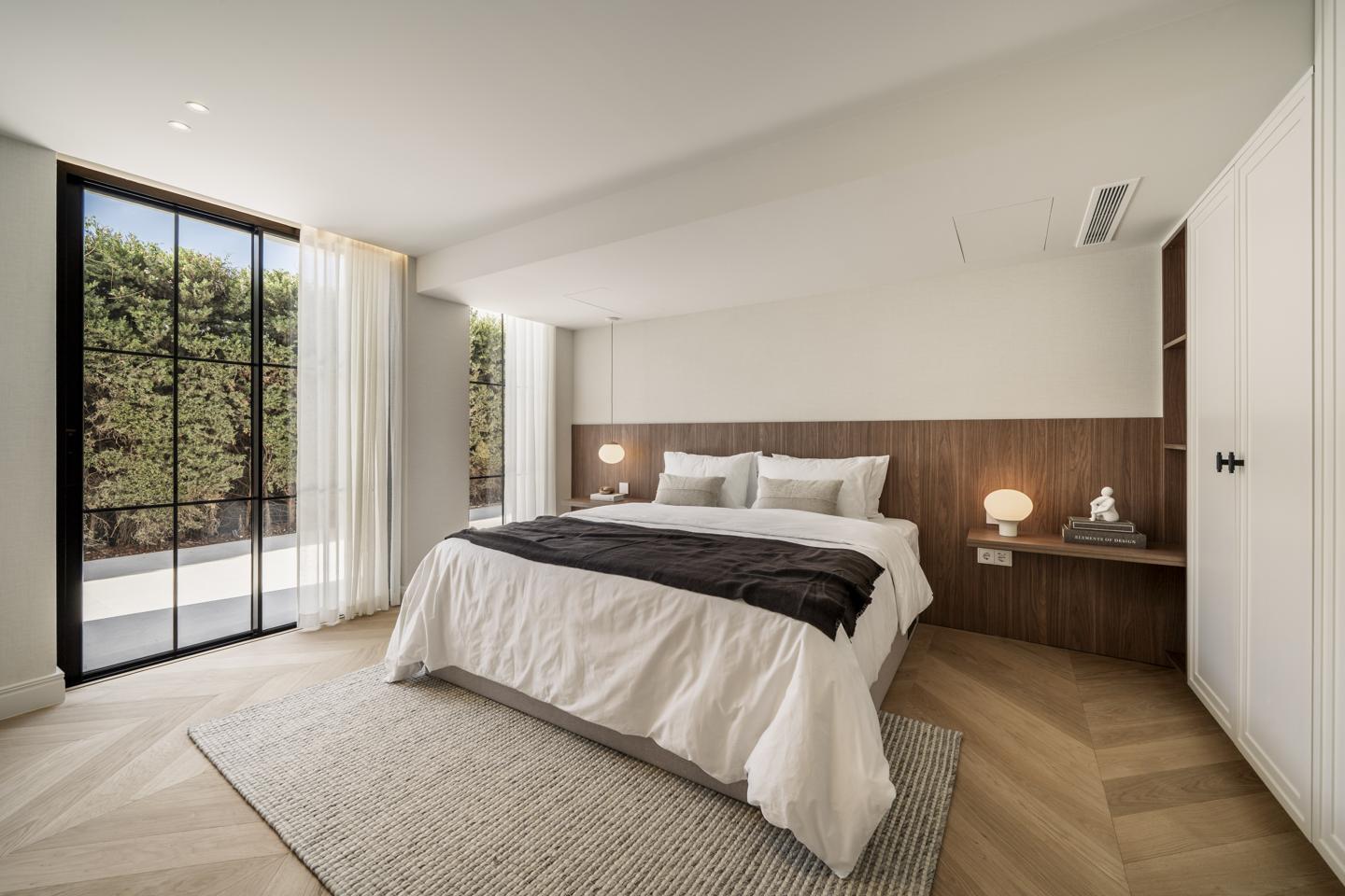 Set on an elevated plot, the villa enjoys panoramic golf and sea views while being just moments from Marbella’s top amenities. Inside, the home features elegant Chevron wooden flooring, a sleek Danespan kitchen with high-end Gaggenau appliances, and bright open spaces designed for easy, modern living.