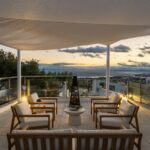 The residence features a private rooftop solarium with panoramic sea views and a dedicated jacuzzi, providing an elevated space for relaxation and social gatherings. A private lift serves all levels, including direct access to the garage, ensuring convenience and accessibility throughout the home.
