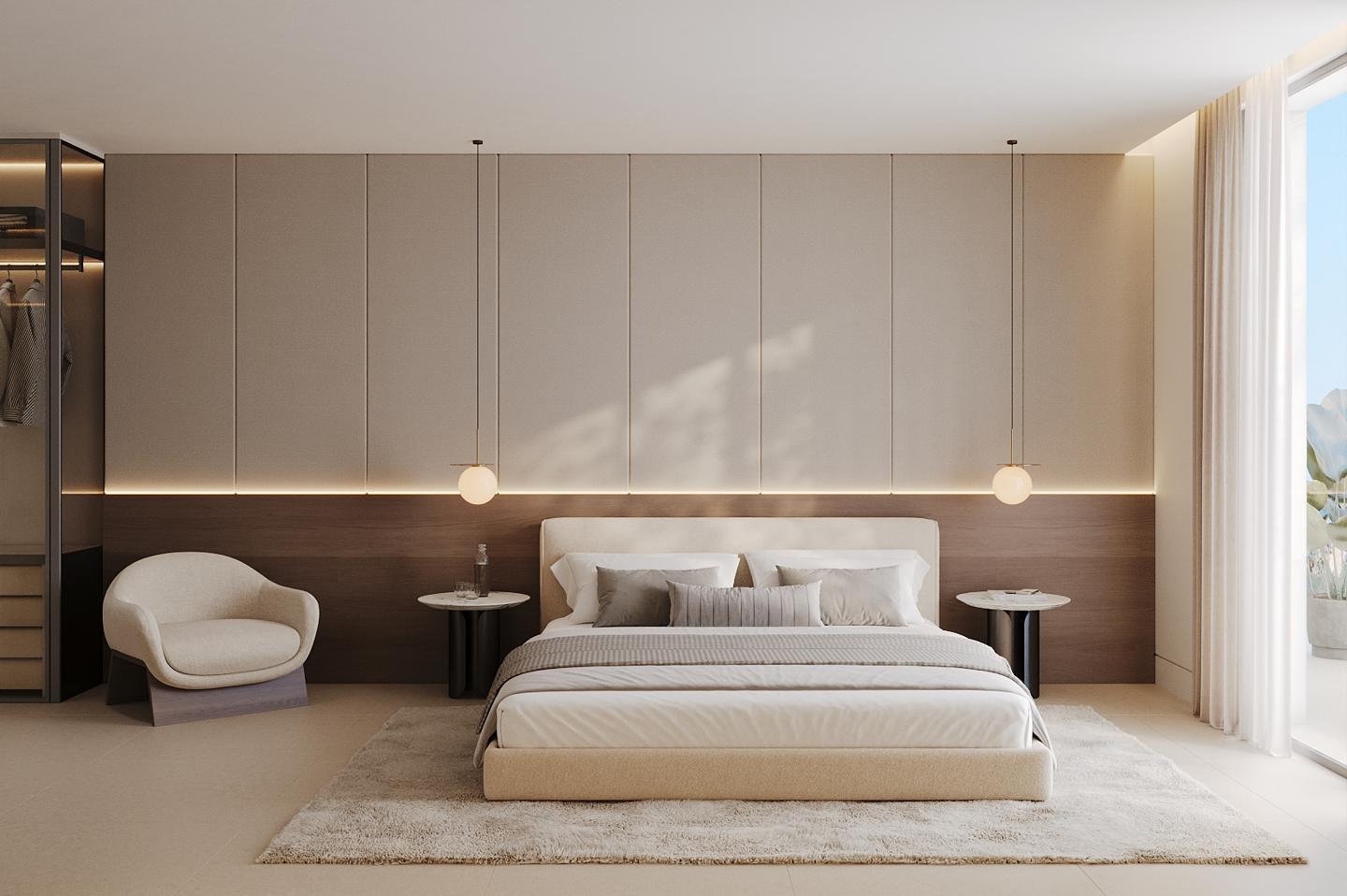 Interior design has been created by Gunni & Trentino, with a focus on balance, quality and durability. Finishes are neutral and understated, incorporating natural materials such as wood and stone to create functional, well-proportioned living spaces. An optional furniture package is available for buyers seeking a fully furnished, turnkey solution.