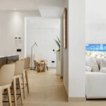 The villa features four spacious, sun-filled bedrooms and four contemporary bathrooms. The open-plan kitchen, equipped with a central island and top-of-the-line appliances, flows seamlessly into the living and dining areas, opening onto a terrace that overlooks the landscaped garden and private pool. A large rooftop terrace offers breathtaking sea and mountain views, perfect for entertaining or relaxing in privacy.