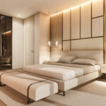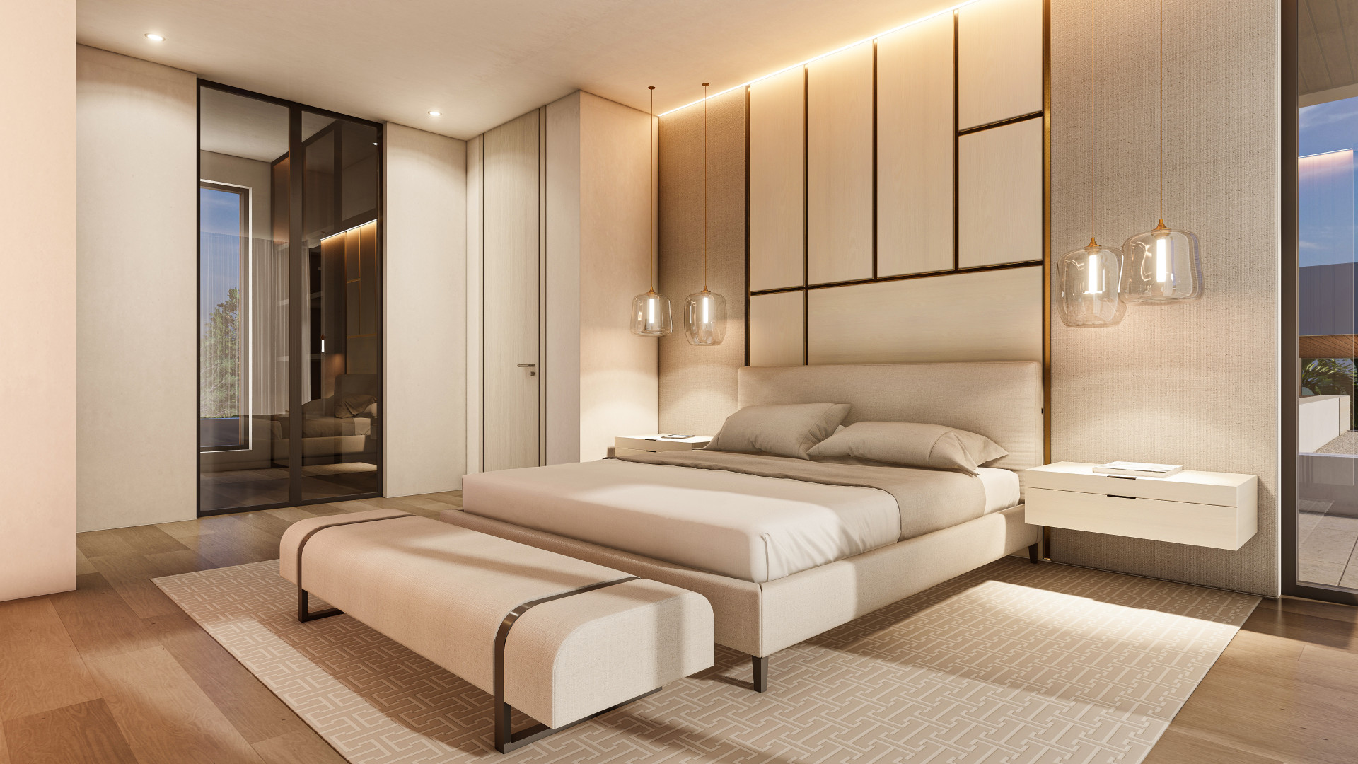 The opulent master suite exudes sophistication, featuring an expansive custom-designed walk-in closet that leads to a sumptuous marble-clad bathroom, which in turn opens onto a terrace with a view that steals the breath away.