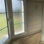 Family bathroom with bath and shower over,