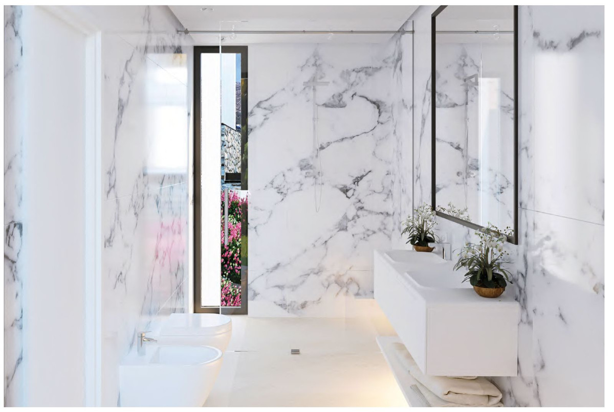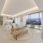 The villas have been thoughtfully designed with a harmonious layout, where the living room, dining area, and open-plan kitchen come together to create a spacious, bright living space. Large panoramic windows flood the interiors with natural light and provide breathtaking views. The transition between indoor and outdoor living is seamless, thanks to generous partially covered terraces — perfect for relaxing or entertaining while enjoying the Mediterranean surroundings.