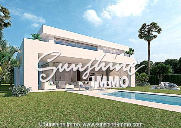 Total sqm built: 400 sqm (up to 430 sqm) includes terrace of 195 sqm Plot: 1189 sqm (up to 1552 sqm) Bedrooms: 3 (4,5 and 6 available) Bathrooms: 3+ toilet (up to 5 ) Terraces: 4 with pergolas and semi-detached Views: nature Pool: private 32 sqm Garden: private garden with automatic irrigation system Kitchen: modern kitchen with Siemens home appliances (3 types) Parking space for 2 cars Air conditioning and central heating: yes underfloor heating: yes solar panels: yes Marble floor: yes high quality cream marble in and outside security door: yes, made of Iroko wood Preinstalled home installation Video entrance system: yes security 24 hours: yes Spa: yes, including heated indoor pool, sauna and chill out area Club house: yes