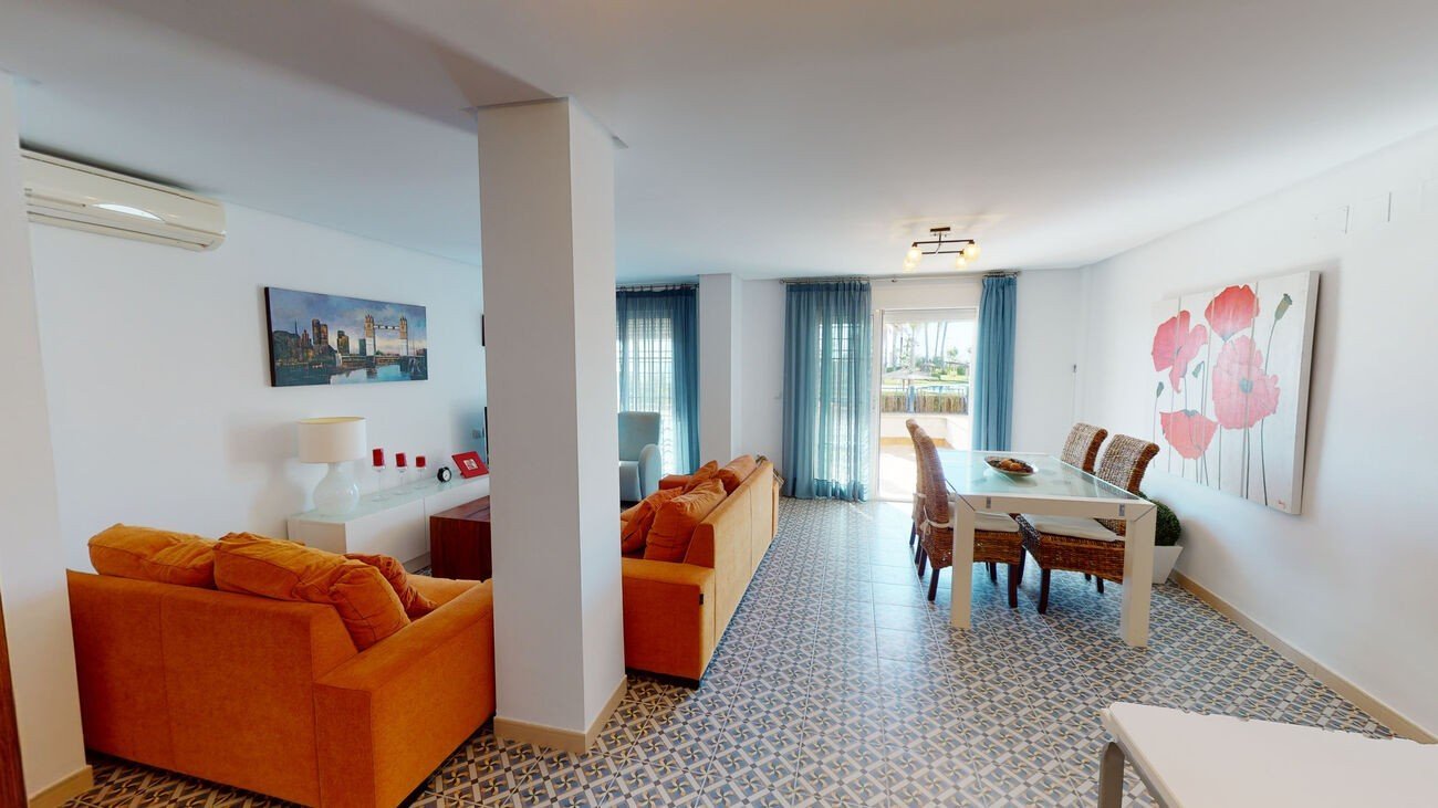 Luxury apartment with frontal views of the Mediterranean sea in Mil Palmeras, near Pilar de la Horadada in the South of the province of Alicante. The property is located on the ground-floor and situated in one of the most sought after areas of the Costa Blanca. Offering a ground-floor with two bedrooms, two bathrooms, a fully equipped kitchen with utility-room and a large living/dining-room with direct access to the terrace providing spectacular views & the best sunrises over the Mediterranean sea. In the basement, a huge bedroom and a private garage. The property has air-conditioning, a communal swimming pool, children's play area and sports courts. It is very very close to all services, just five minutes by car from supermarkets, restaurants and shops. Do not hesitate, call us, visit & have the best views in the world!