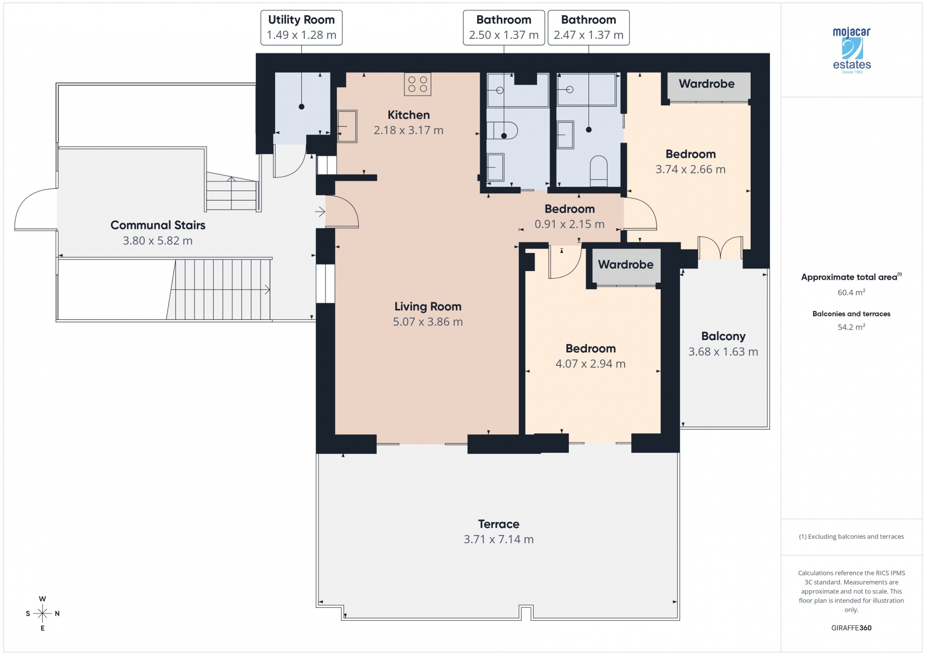 The master bedroom has built-in wardrobes, air conditioning and patio doors leading directly to the terrace. The second bedroom also features built-in wardrobes, air conditioning and an en-suite shower room. A second shower room is located opposite the master bedroom.