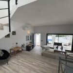 The property features a striking split-level living room, creating a sense of space and architectural interest, perfect for both relaxing and entertaining. Large openings allow natural light to flood the interiors, while framing picturesque sea views.