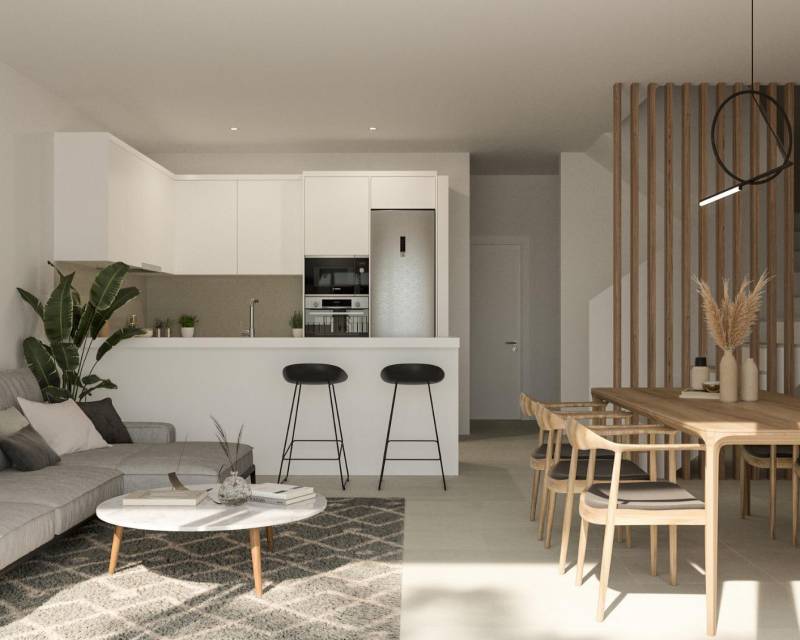 NEW BUILD TOWNHOUSES IN MONFORTE DEL CID New Build development of 54 townhouses and semi-detached villas in Monforte del Cid. Spacious properties with 3 bedrooms, 2 bathrooms and 1 toilet. All the properties have a private garden on the plot, a solarium area and a parking space. The homes have full aerothermics, a renewable energy system that takes advantage of external environmental energy. Each property has been meticulously designed to provide you with maximum comfort and functionality. In addition, the spacious interiors blend perfectly with the outdoor areas. Imagine relaxing on your own terrace while admiring the golf course and enjoying the tranquillity you deserve. Residents of this development will have exclusive access to a wide range of first class amenities. Enjoy refreshing dips in the communal swimming pool, keep your body in shape in the fully-equipped gymnasium, and enjoy a refreshing swim. Immerse yourself in a luxury lifestyle and enjoy the serenity that only Alenda Golf can offer you. These modern and stylish bungalows are strategically located in a stunning natural setting, surrounded by lush vegetation and with panoramic views of the golf course. Private urbanisation close to the main cities of the province of Alicante, 15 minutes drive from Elche and Alicante, as well as the airport and the best beaches. Development is located in a peaceful setting close to the Alenda Golf Course in Monforte del Cid.