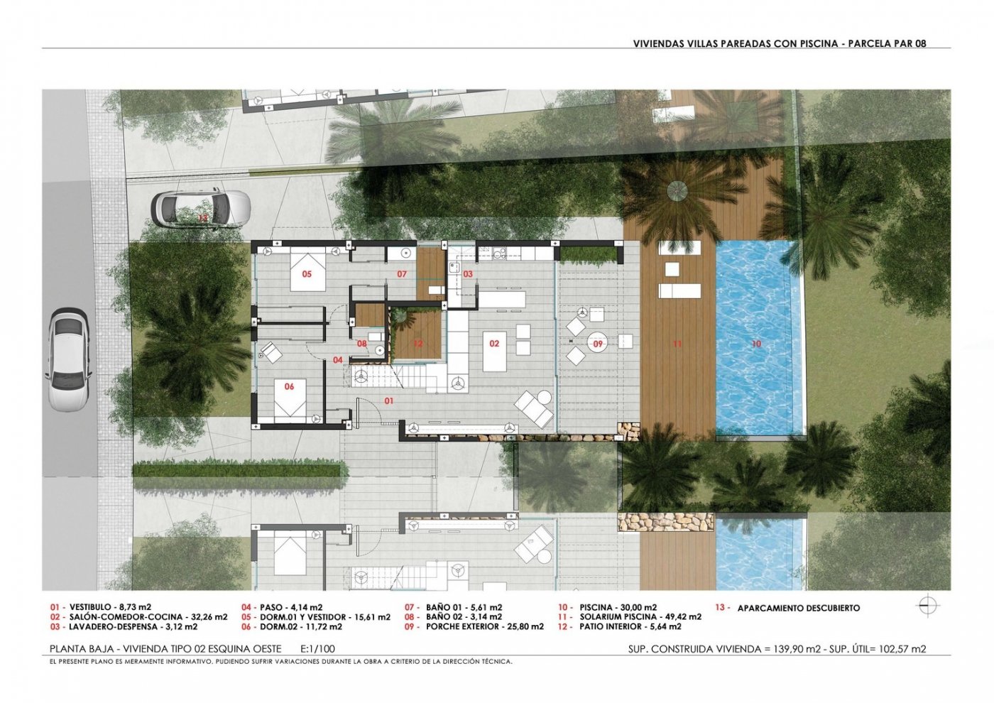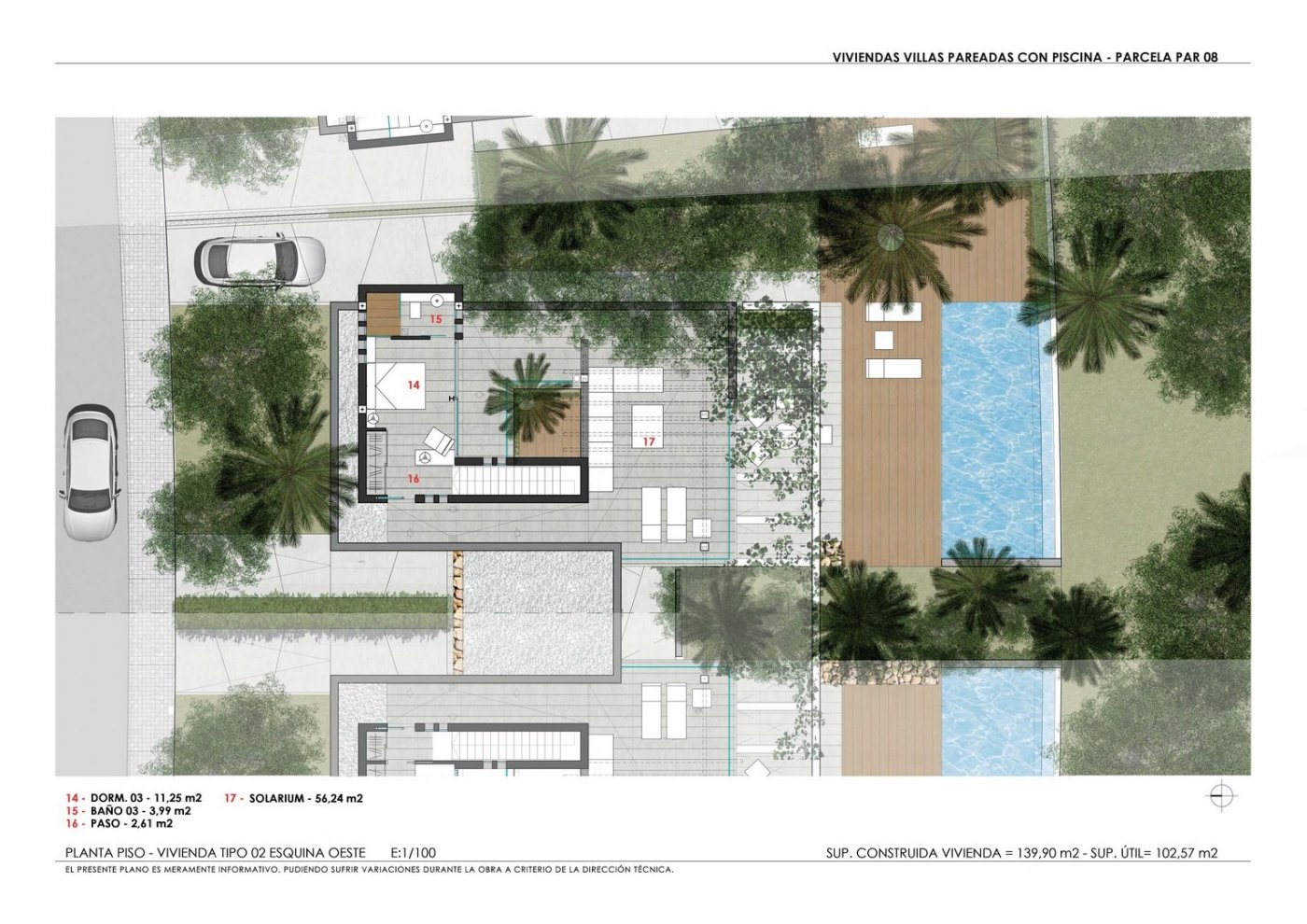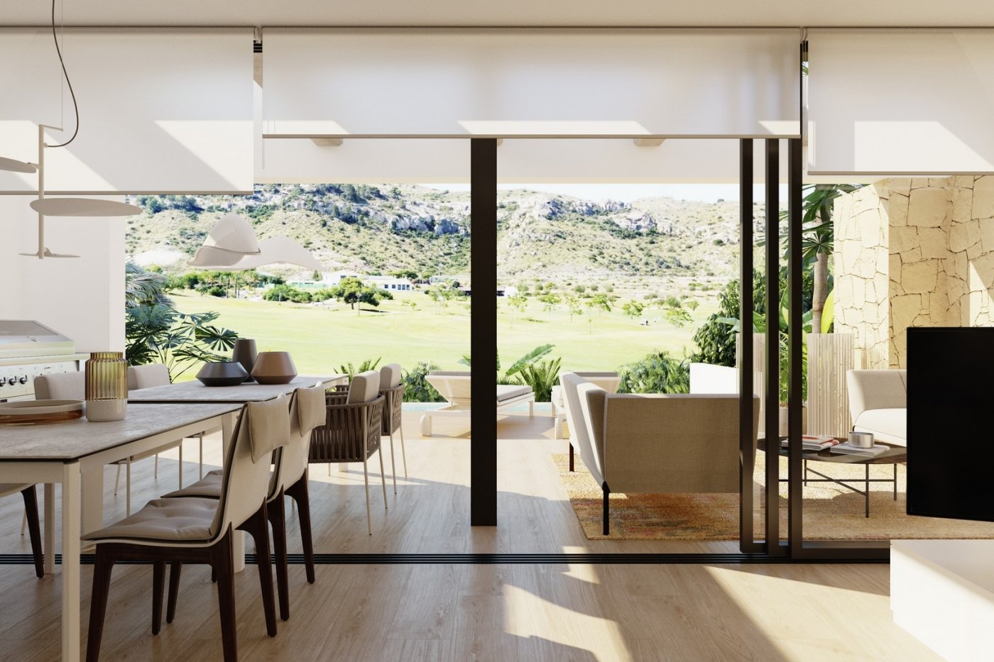 FIRST LINE GOLF VILLAS IN FONT DEL LLOP GOLF COURSE New construction villas with private garden, swimming pool and solarium, parking space on the plot. Homes aimed at the best orientation, pursuing the best views of the Font del Llop golf course. They have large windows that are properly oriented and protected, allowing the sun to warm in winter and illuminate the interior of the homes. Strategic carpentry openings provide cross ventilation from facades and interior patios. An environment heavily vegetated by native species that, with the consequent saving of water, will protect the bioclimatism, since its vegetal mass renews the air, generates cross ventilation and absorbs CO2 emissions. All homes are designed and equipped to meet high performance in terms of energy efficiency. Font del Llop is strategically located in the heart of the Province of Alicante. It is located 10 minutes from Alicante-Elche international airport. The closest train station is located in Alicante, 15 minutes from the golf course. In addition, a modern road network that connects it with the main cities of Spain. Font del LLop Golf Resort is located 20 minutes from the wonderful unspoilt beaches of the Mediterranean Sea. Therefore, the temperature is perfect (18º on average) for playing golf and practicing other outdoor sports, having 300 days of sunshine a year. The golf course also has 25 km of free terrain for hiking and mountain biking.
