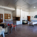 As you enter the front door, you are greeted by a large foyer adorned with a majestic staircase. To the left, you will find one of the living rooms, followed by a double bedroom and the kitchen. A side door from the kitchen leads to a large garage, currently used as a summer kitchen and entertainment room, offering versatile space for various activities. The kitchen also offers access to a patio, ideal for al fresco dining. Furthermore, the ground floor features a family bathroom for added convenience.