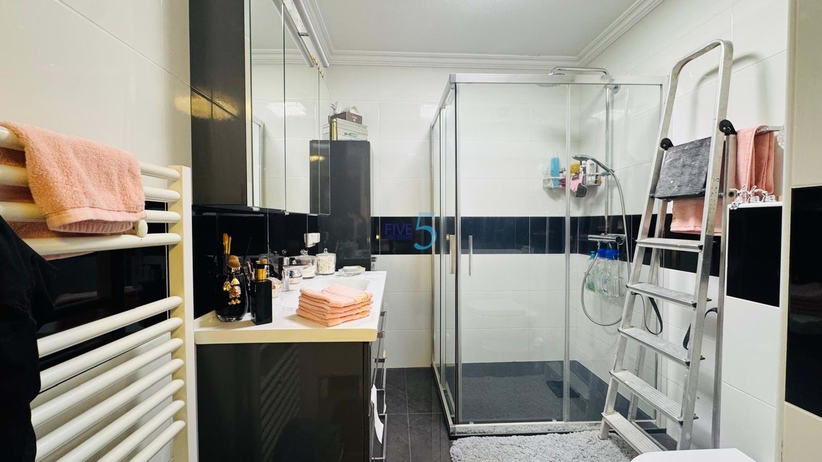 There are three double bedrooms, each with fitted wardrobes. The master bedroom boasts a modern en-suite bathroom with a walk-in shower, while another bedroom also enjoys its own glazed balcony. The family bathroom includes a combined bath and shower.