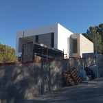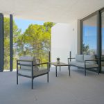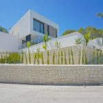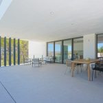 This beautiful villa is located in a quiet area less than 10 minutes from the beach and the centre of Moraira. The villa is surrounded by a wooded area and is spread over three floors. The first floor comprises a spacious living-dining room, an open-plan kitchen, a double bedroom with an en suite bathroom and a guest toilet. Through sliding windows there is access to a large partially covered poolside terrace. On the second floor you will find the master suite with a large dressing room and en suite bathroom and two double bedrooms sharing a bathroom. All bedrooms on this floor have access to a large terrace with a pergola. The ground floor consists of a garage with space for two cars, the driveway in front of the garage has parking space for two more cars. In addition, on the ground floor there is a very large laundry room, a drying room, a gym, a storage room, a technical room and an outdoor bathroom. The villa is surrounded by a low-maintenance Mediterranean garden and has automatic irrigation. The villa also has air conditioning and underfloor heating. The villa is completely finished and sold furbished.