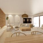 This beautiful Ibiza style villa is currently under construction and will be delivered at the end of 2023. The villa is located in a unique location and offers breathtaking views over the landscape and sea. The villa is distributed over 3 floors. On the lower floor is the spacious garage which is suitable for several cars. On the ground floor there is a spacious lounge with dining area, a fully equipped modern kitchen, a guest toilet, a laundry room and a spacious double bedroom with bathroom en suite. On the upper floor there are 3 spacious double bedrooms, each with their own dressing area and bathroom en suite. In addition to the beautiful spacious partly covered terrace with swimming pool, there are several seating areas around the villa from where you can enjoy the breathtaking views.