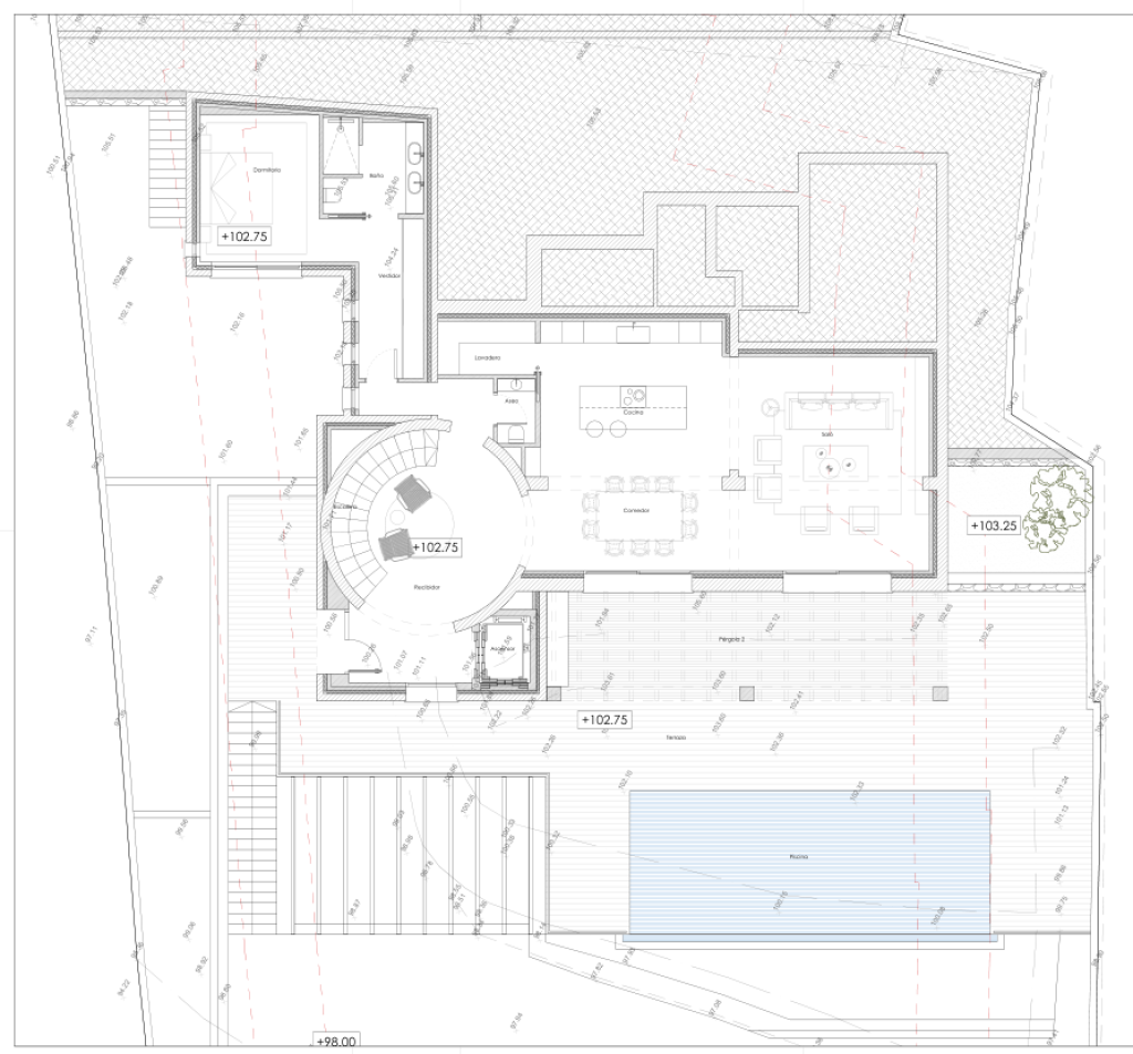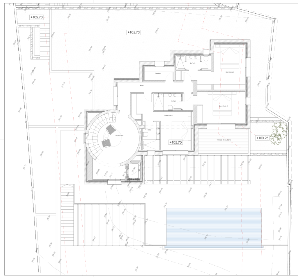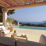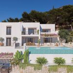 This beautiful Ibiza-style villa is located less than 5 minutes' drive from the touristy coastal village of Moraira. The sandy beach and the idyllic pebble beach of El Portet can also be reached immediately. From the villa there are beautiful panoramic views of the sea, the Calpe rock and over the valley. The villa is divided over two floors. The ground floor consists of a spacious living-dining room with an open kitchen with a cooking island. Through the sliding windows there is direct access to a large terrace partially covered with a pergola, a barbecue and an infinity pool. On this floor we also find a guest toilet and a double bedroom with an en suite bathroom and a private terrace. The upper floor consists of three double bedrooms, each with an en suite bathroom and a balcony. Covered parking is also provided for two cars. In addition, the villa has a lift that goes from the car park all the way into the villa.