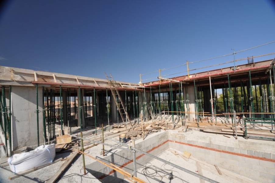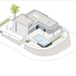 The house consists of 4 floors. The main living floor has a spacious living/dining room with access to the pool terrace, a very large kitchen, two double bedrooms with built-in closets and access to the terrace; both bedrooms share a bathroom with walk-in shower. On this floor, there is also a guest toilet. On the second floor, you find the master bedroom with en suite, a walk-in closet, and access to a private sun terrace. Beneath the main living floor, there is a large under build with space to create another 3 (bed) rooms and where the garage is located. From here there are stairs down to the basement. Extras: several suns and covered terraces, 8x4m swimming pool, double glazing, underfloor heating, basement for storage and an off-road parking spot.