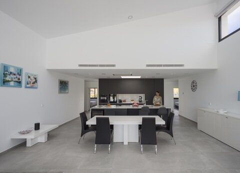 We are excited to offer these beautiful 4 bed 4 bath single storey villas built in a contemporary minimalist design with spacious rooms. The villas have 195 square meters of living space overlooking your own private pool on the edge of the Altaona golf course. The high ceilings create a space full of light. The central living / kitchen space gives direct access to the four bedrooms each with views to the garden. Altaona golf resort is a 10 minute drive from the beautiful city of Murcia and 20 minutes from Murcia airport and the beaches of the Mar Menor. You enter the property into the large sunny open plan living / dining and kitchen area with patio door access to your private swimming pool. You'll find two bedrooms to the right, the master suite with dressing area and ensuite bathroom and guest bedroom with ensuite. To the left are a further two double bedrooms, one ensuite and a separate bathroom. The kitchens are fitted with silestone worktops with Bosch appliances, induction hob, extractor, fridge, oven, microwave and built in dishwasher and washer/dryer. The pools are built to design and come with outdoor shower, white mosaic tile finish and pre-installation for pool heating. There are a total of 5 villas being built one plot has sold so far. Contact our office on 00 34 868 11 00 11 for more information.