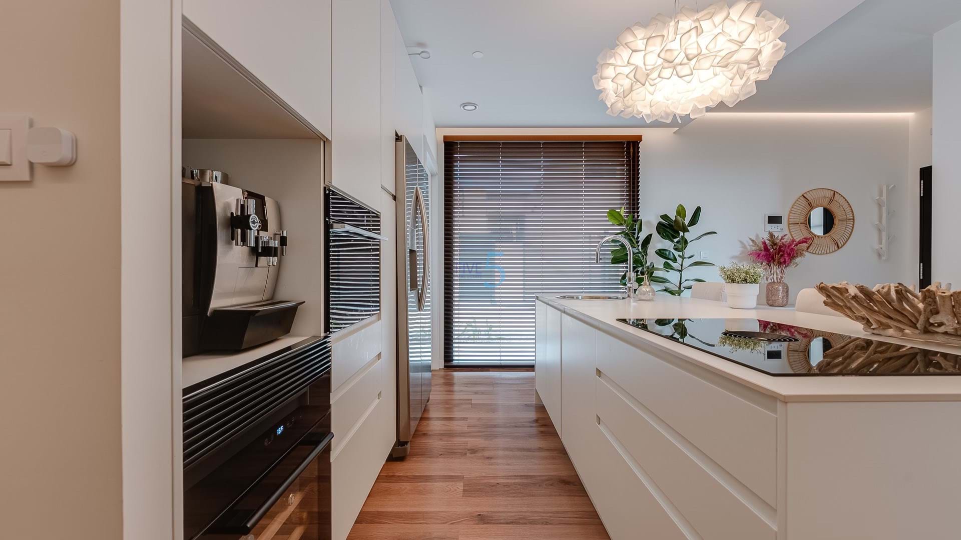 As you step inside, you are greeted by a spacious, upgraded living area and a modern kitchen equipped with all the necessary appliances, including a washing machine and a dishwasher, an American fridge, an Induction hob with extractor and a professional coffee machine.