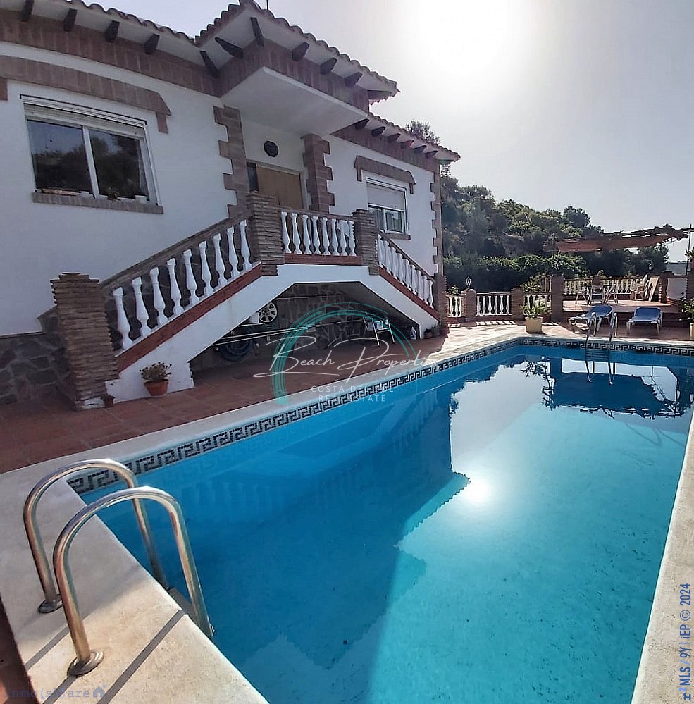 Finca with a large plot of 2538 m2 with a unique enclave and 5 minutes from the center of Nerja Oriented totally to the south and with its own legalized water well and 15,000 L of water deposit. This finca is distributed in 3 parts. Main house: 3 bedrooms, 2 bathrooms with shower (one of them en suite with hydromassage), living room with fireplace, fully equipped kitchen.Air conditioning. 100 m2 Independent Apartment: 80 m2. 1 Bedroom, living room, open kitchen and bathroom. Workshop. Large workshop of 100 m2 conditioned to make a large apartment. It currently has a bathroom, kitchen and fireplace. It also has a garage. It has a private pool and many terrace areas to enjoy the sun. Central heating throughout the house by Butane gas. Solar panels. Large completely flat plot with 50 avocados, mangoes, bananas, loquats a small orchard with greenhouse and chickens.