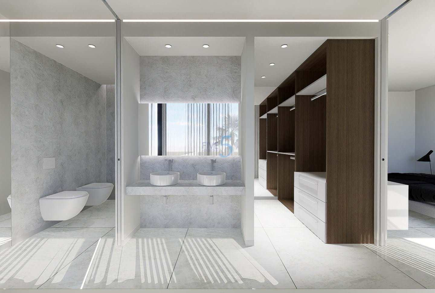 The interior of the villa is designed with a focus on comfort and functionality. Porcelain stoneware floors add a touch of elegance and are easy to maintain, ideal for a modern home. The villa is equipped with air conditioning, ensuring a pleasant environment throughout the year. Built-in wardrobes in the bedrooms offer ample storage space, maintaining order and organization. With 4 bedrooms and 5 bathrooms, each family member can enjoy their own private space, while the common areas are designed to foster togetherness and enjoyment of the home.