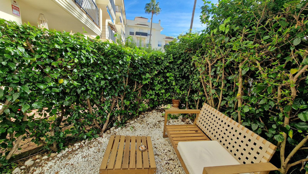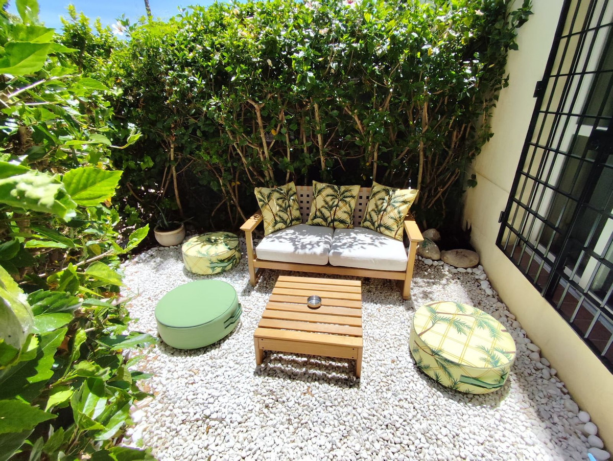 Discover an exceptional opportunity to own a delightful ground-floor apartment in a sought-after, established residential community just a short walk from Puerto Banús and the beach. This cozy retreat offers 1 spacious bedroom, a modern bathroom, a fully equipped kitchen, and a bright living room that opens directly onto a private garden – perfect for outdoor relaxation and entertaining.
