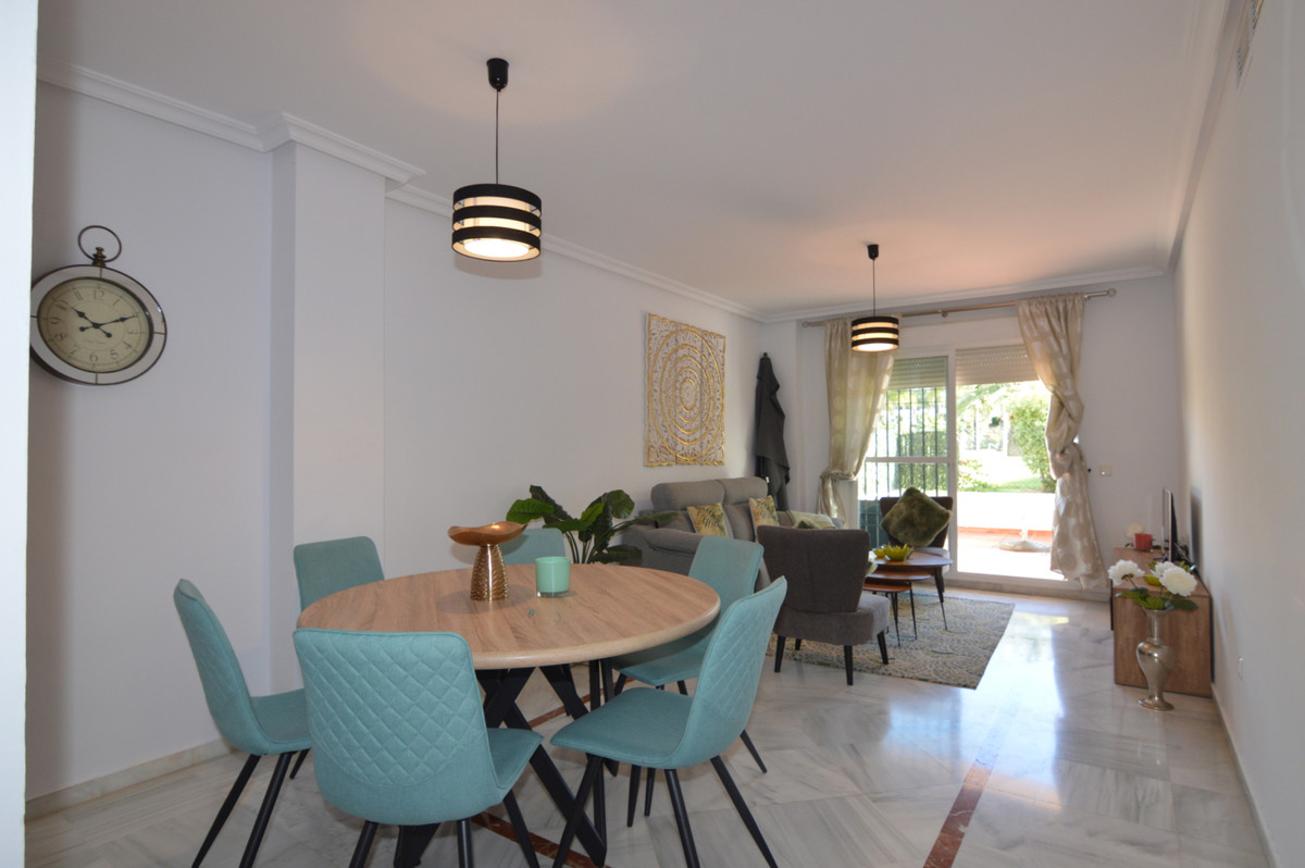 Step into a world of tranquility with views of the communal area, mature gardens, and a sparkling swimming pool. The apartment is orientated to the East, ensuring you enjoy the morning sun. The unbeatable location means you are within easy walking distance to the beach, Puerto Banus, and San Pedro.