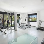 layout, the villa includes a modern kitchen, living area, gym, staff bedroom, and spacious bedrooms on the ground floor. Upstairs, there is a luxurious master bedroom with a walk-in