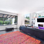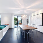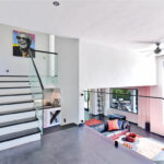 New kitchen with direct access to the outdoor terrace. The living room and recreational area is one level down, with beautiful natural light coming in from the full-size windows facing the garden/pool area.