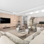 The main floor presents elegant open-plan living with a designer kitchen fitted with Siemens and Miele appliances. The upper level hosts a stunning master suite with private terraces, while the basement is dedicated to leisure, including a cinema room, games area, gym and two additional en-suite bedrooms.