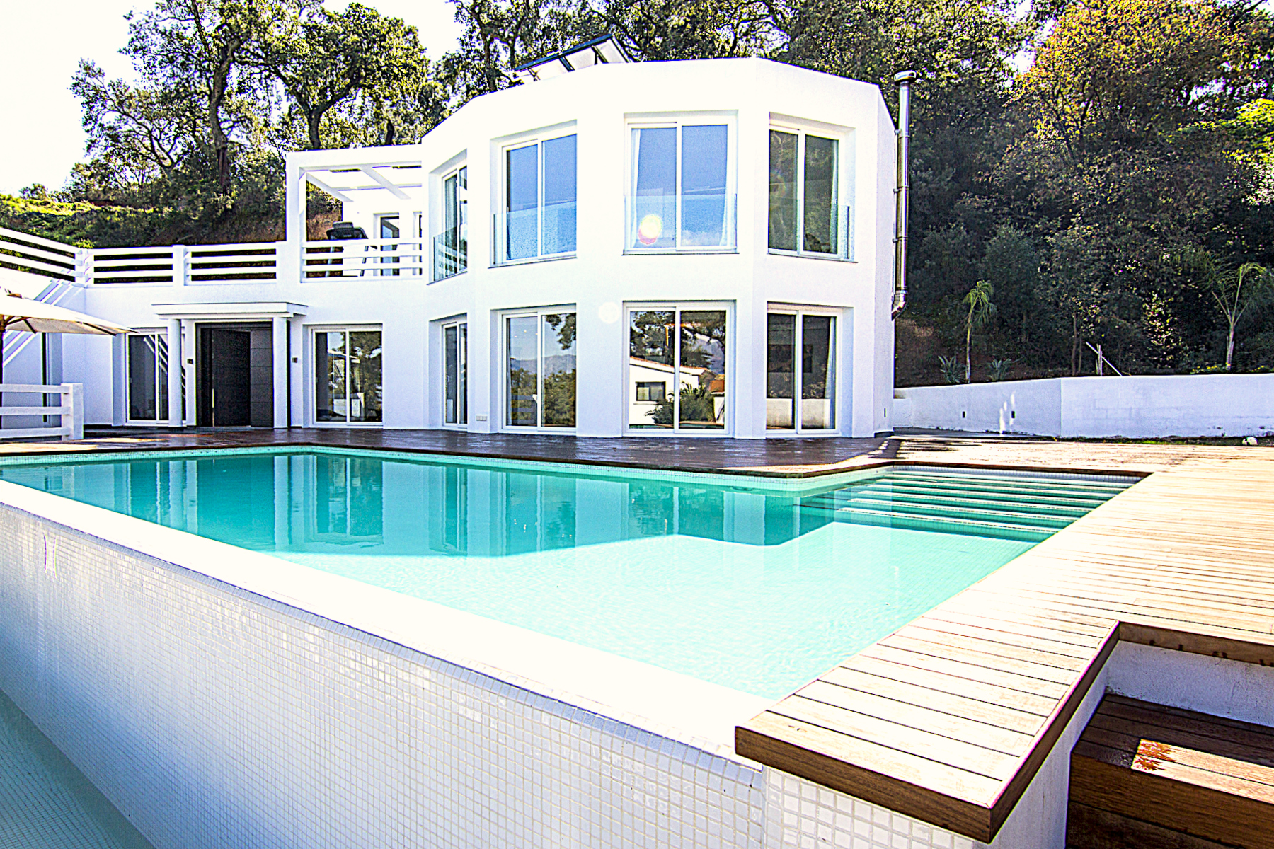 Modern villa in La Mairena of 330m2 built and close to one of the best German College with heated infinity pool, big solarium of 110m2, central air condition hot and cold, solar panels for heating the pool and hot water, garage and with stunning mountain views. La Mairena is a residential resort near Marbella in the Andalusian province of Malaga. The whole area is situated within a century old cork tree forest and offers incredible views all around