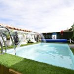 Back in the kitchen a door opens into a spacious living-dining room with feature wooden beams and a beautiful feature fireplace housing a very efficient log burner which benefits from a cooking compartment. On one side of the living room there is a lovely bright double bedroom and a further bedroom which is currently used as a dressing room. On the right of the living room a door opens into an inner hall which leads to the staircase to the first floor. On the end of the living room a glazed door opens into a hallway which provides access out to a lovely private courtyard which is a real sun trap and provides a lovely space for seating. From there you access the workshop which then gives way to the garage which is currently used as further workshop space / log store and it does benefit from double doors so you could park in the garage if necessary. Back in the hallway to the right there is a small sitting area which then gives way to a large bedroom with beautiful wooden beams. From here double doors open into an amazing room which the current owners call the tiki room which benefits from artificial grass on the floor, wooden paneling, bamboo ceilings, bar, seating space, dining area and a door leading out to a lovely private pool area.