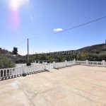 The grounds boast a lovely garden area with mature fruit trees including fig, orange, pear, and cherry, surrounded by a hedge, creating a tranquil spot to enjoy nature. At the front of the villa, a natural stone sun terrace provides the perfect place for sunbathing and relaxing while taking in the south-facing views, which offer sun all day long. A covered arched terrace adds to the charm of the outdoor space, with a staircase leading up to a roof terrace that offers breathtaking views of the surrounding countryside.