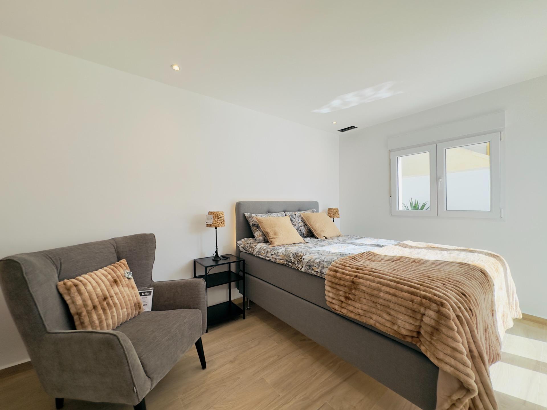 For those looking for extra space or versatility, external stairs lead up to the rooftop solarium, which offers panoramic views of the surrounding area and the sea in a distance. Here, an extra room awaits you, perfect for use as a home office or additional accommodation.
