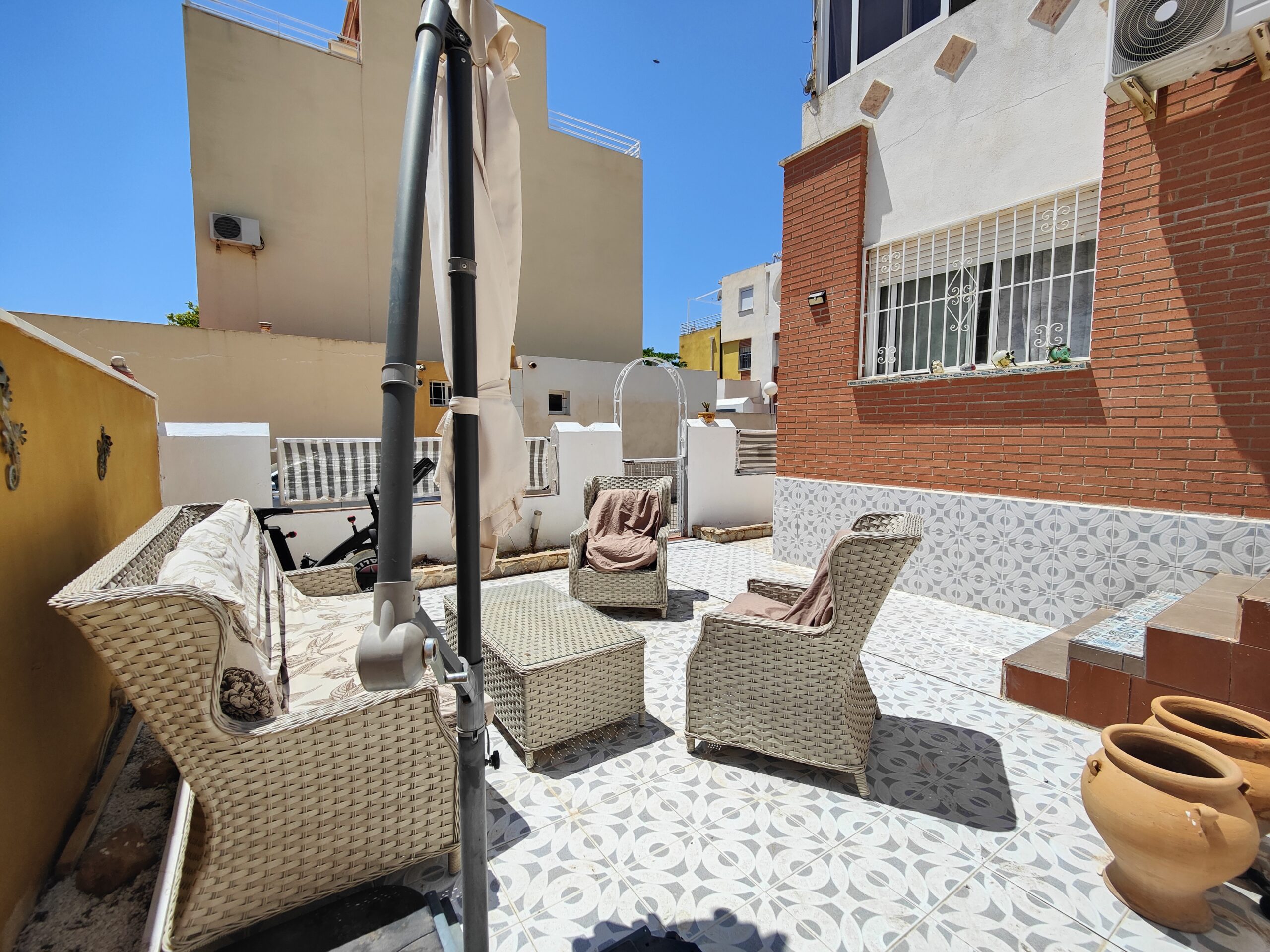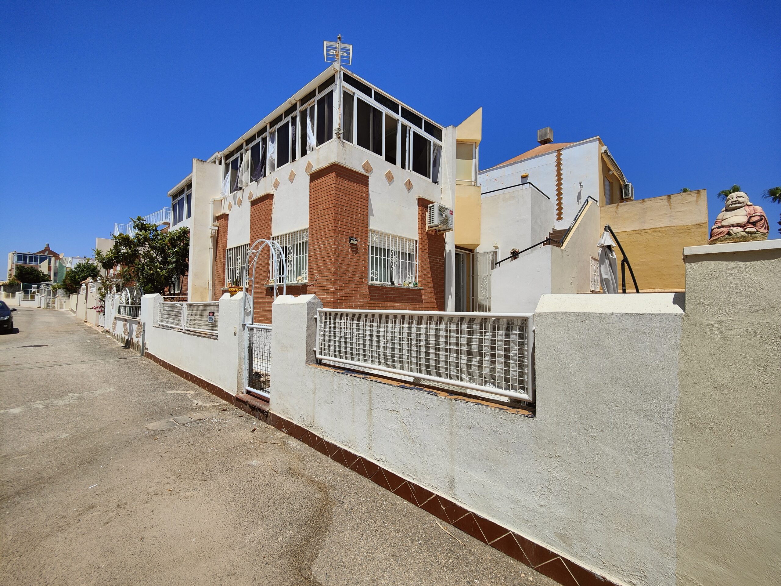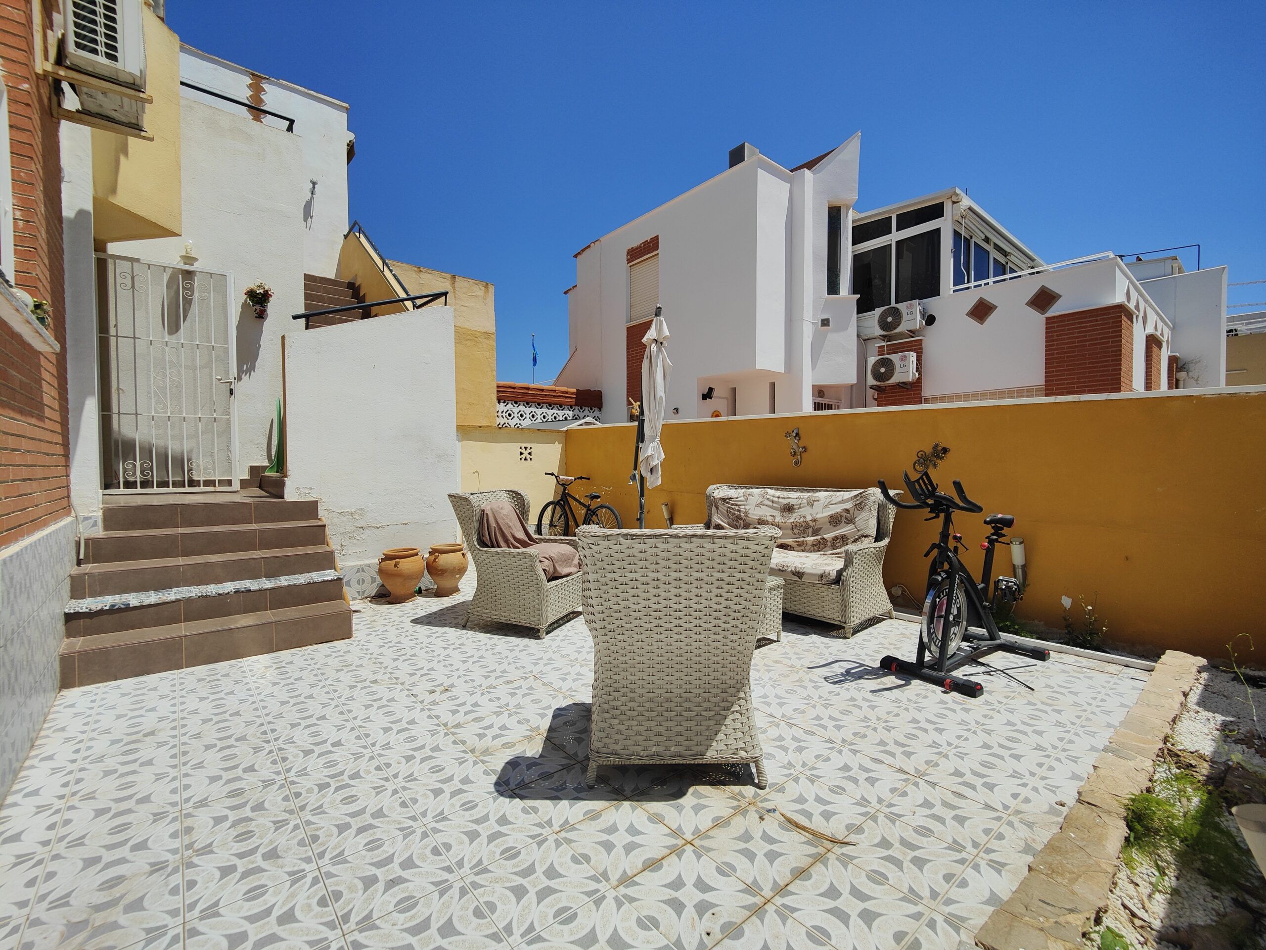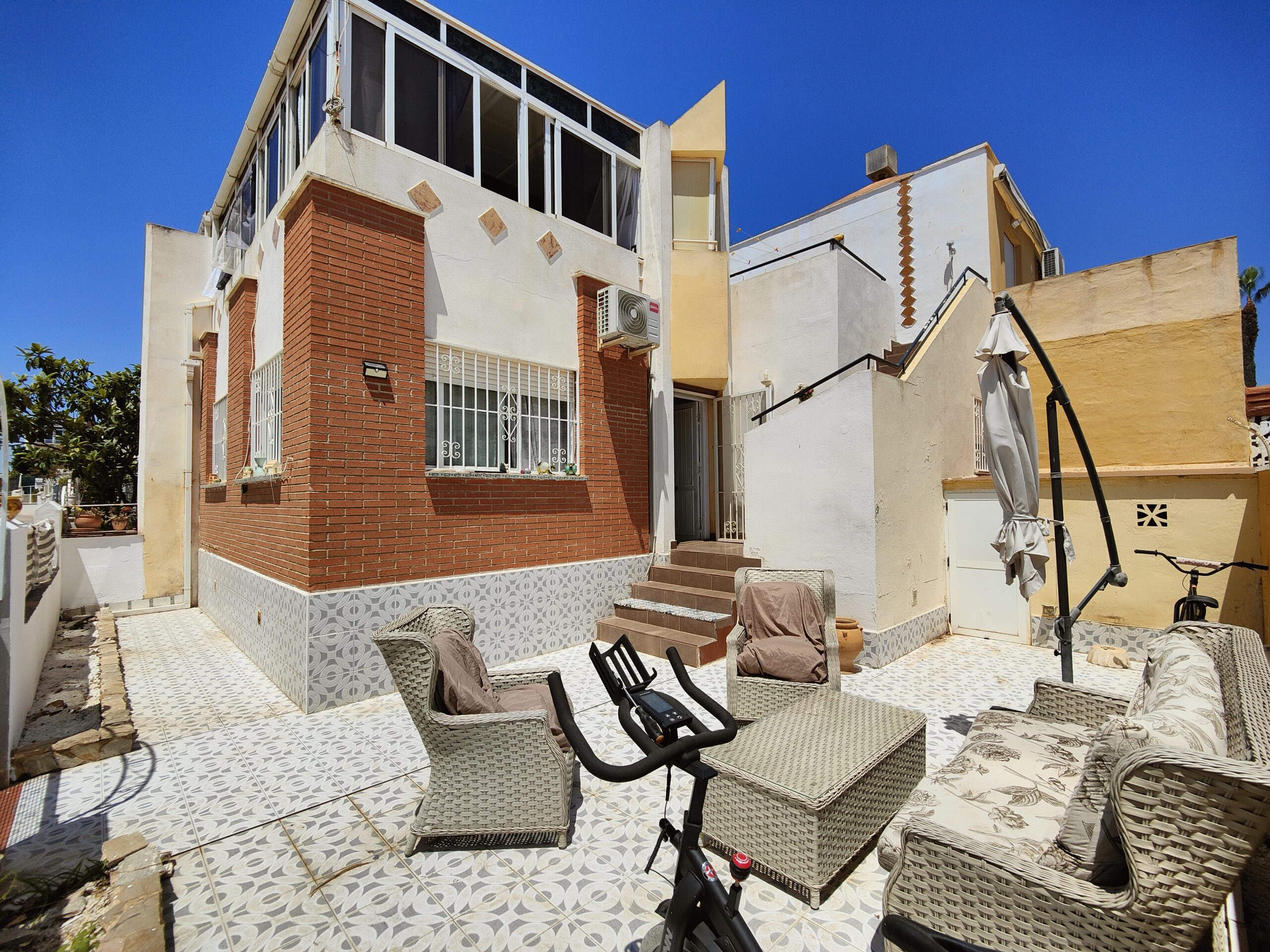 Great SOUTHEAST facing quad house for sale in one of the best residential areas of Orihuela Costa. It is located in a residential complex with a large communal pool and large green areas.