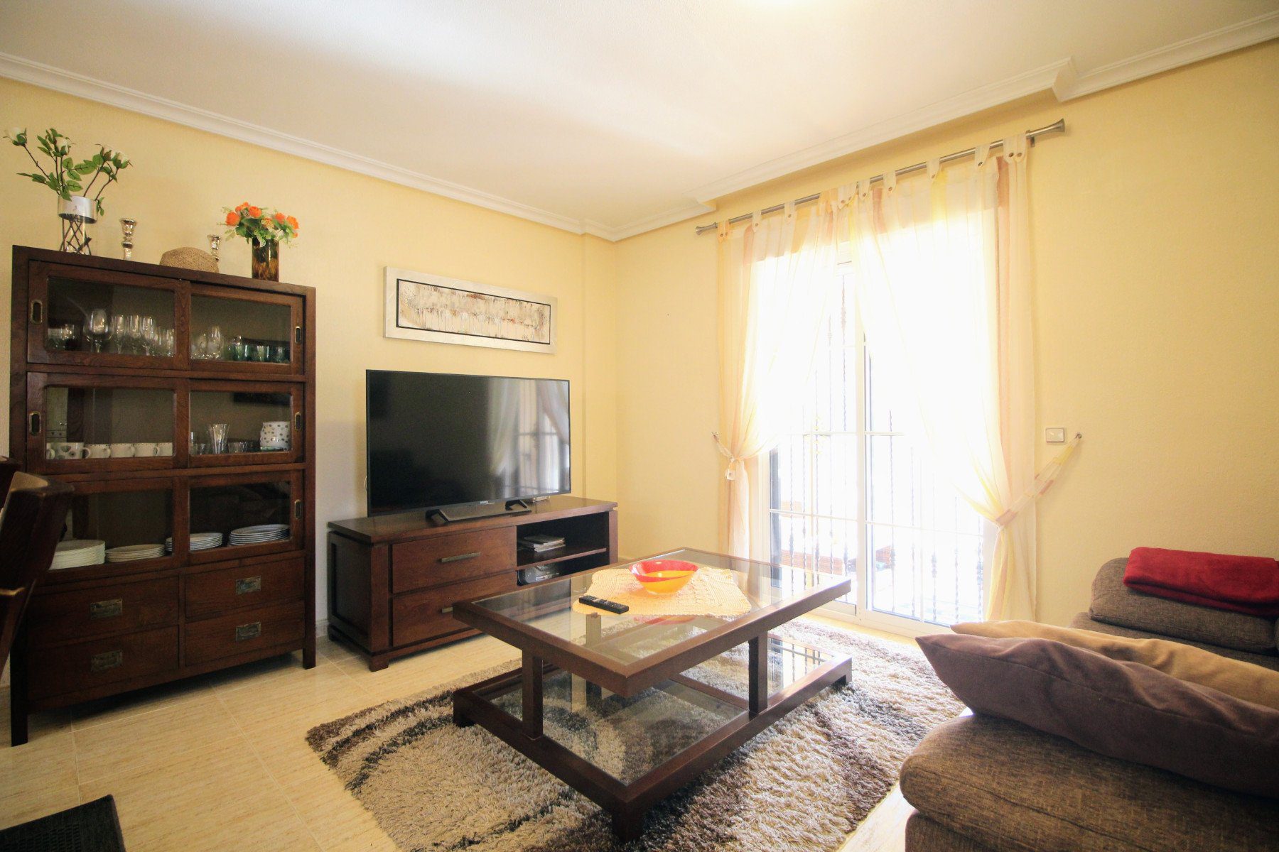 In a quiet area in Lomas de Cabo Roig, a ground floor apartment with a spacious tiled yard and a private pool! The apartment has two bedro