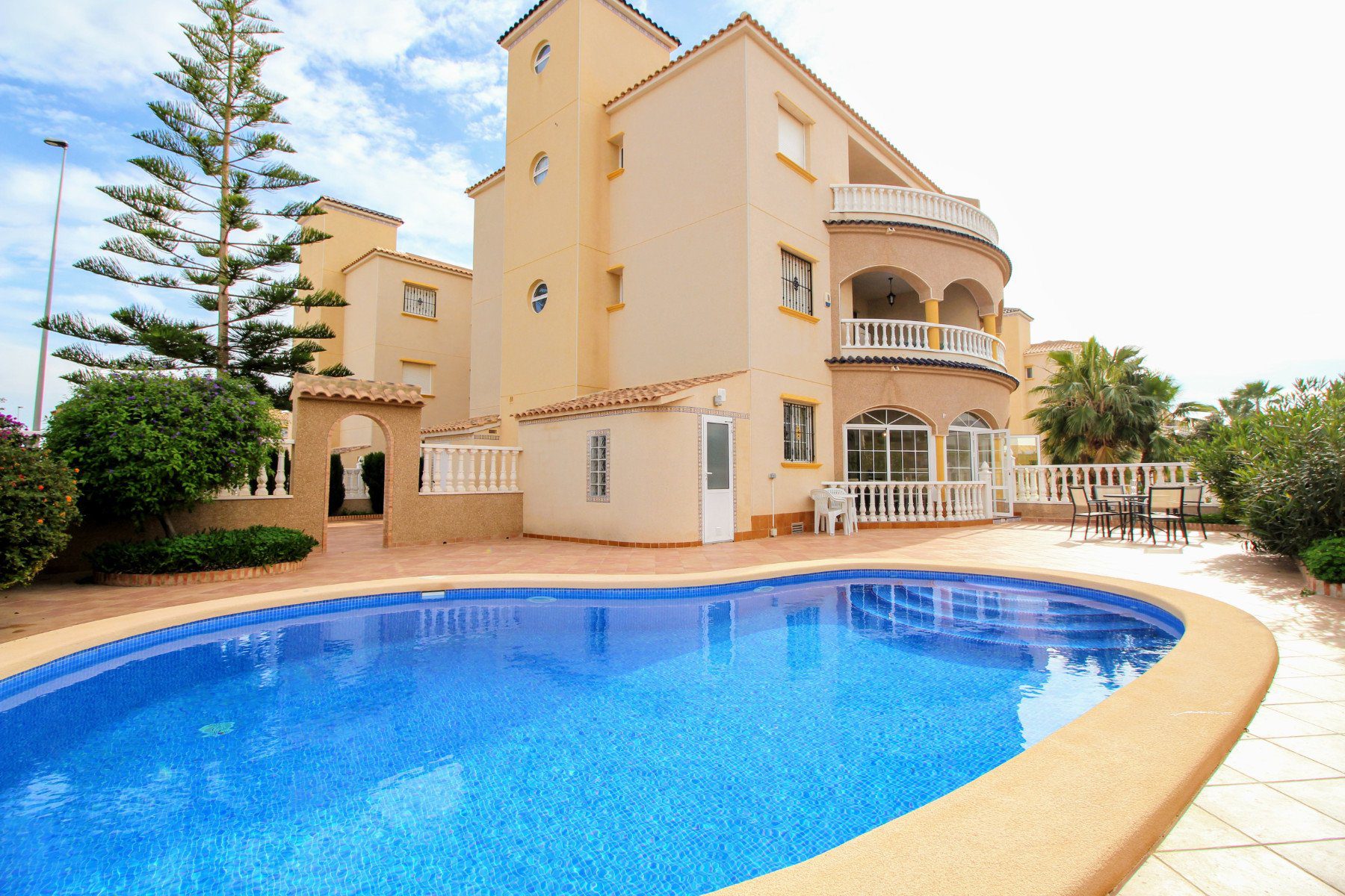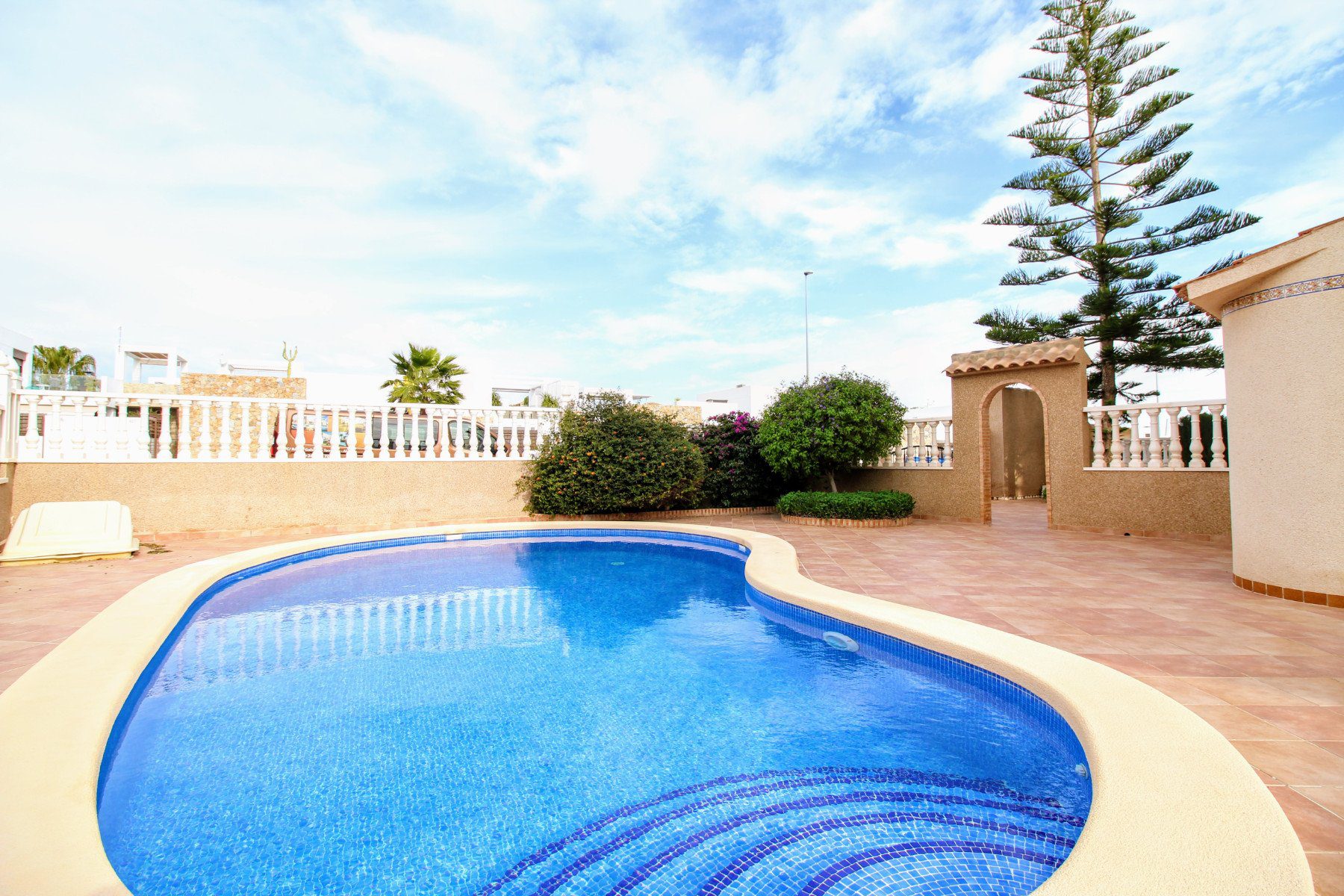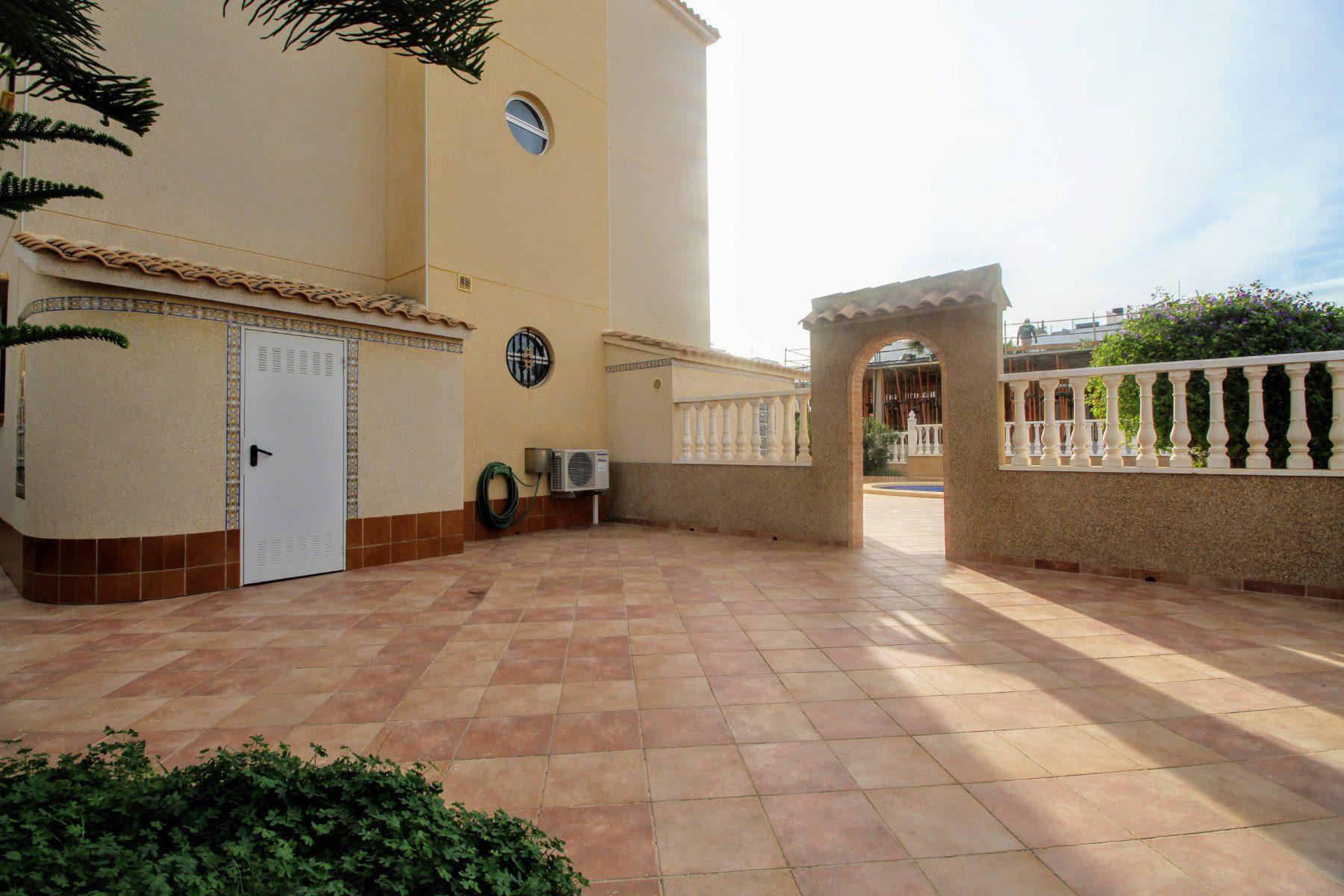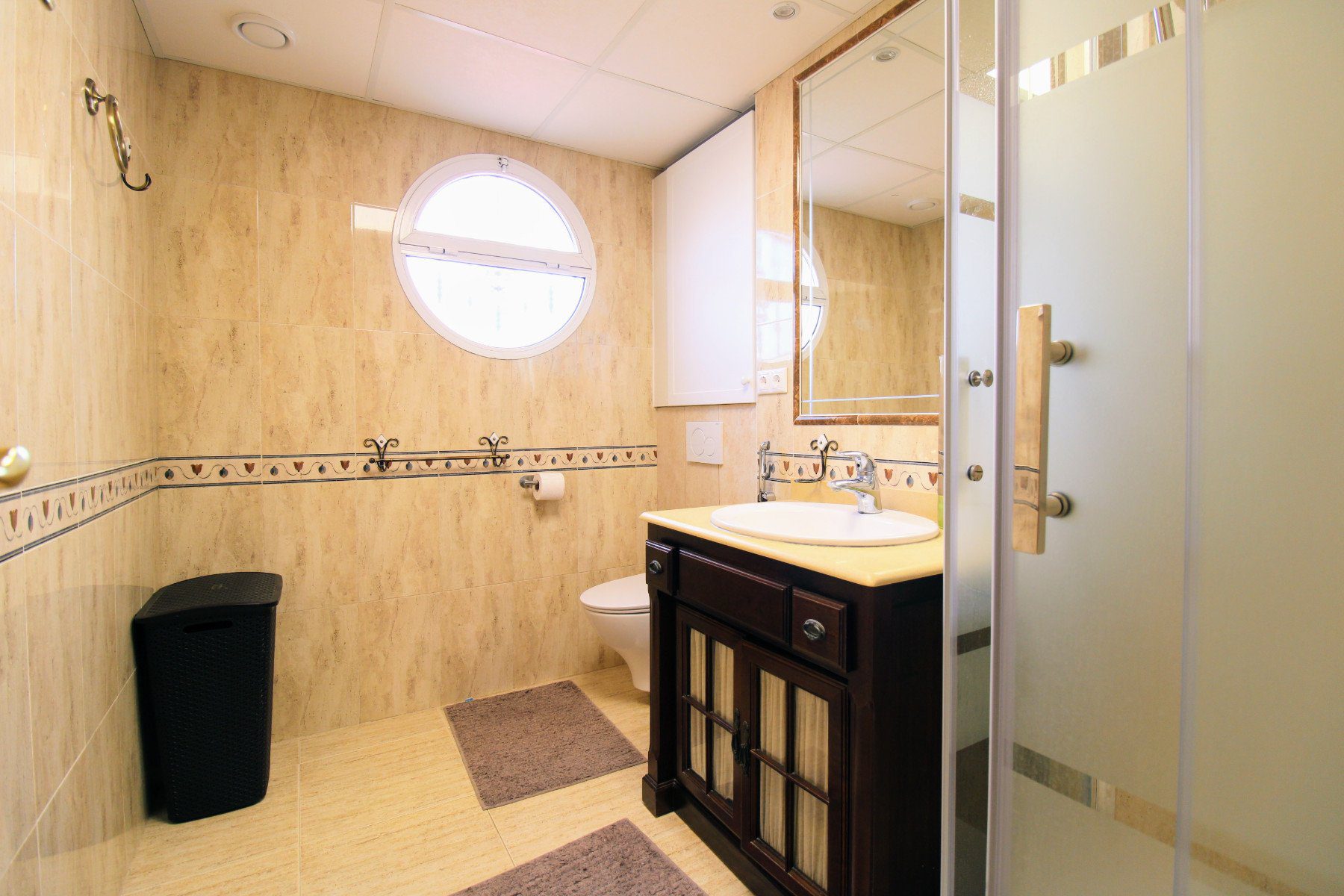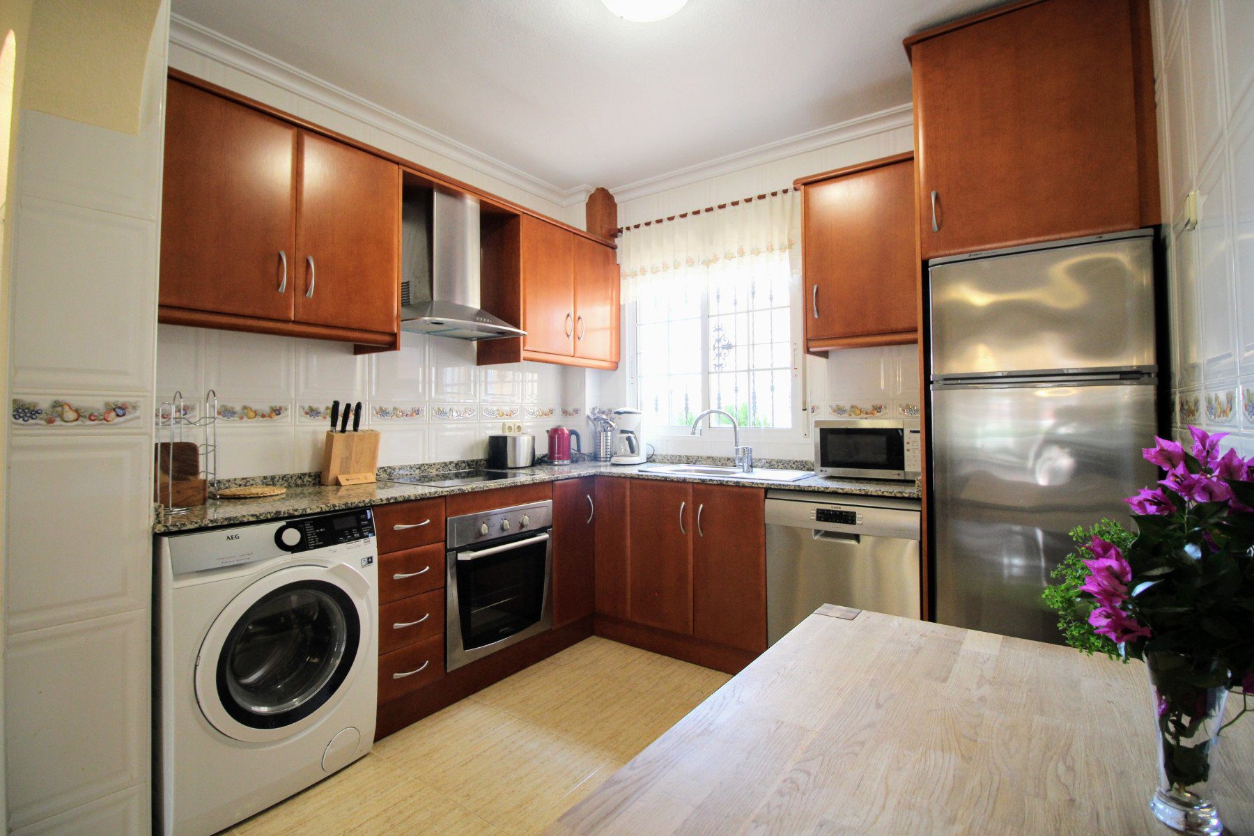 In a quiet area in Lomas de Cabo Roig, a ground floor apartment with a spacious tiled yard and a private pool! The apartment has two bedrooms, a well-equipped kitchen, a bathroom with shower, and a wonderful glazed terrace with direct access to the pool. The apartment has central air conditioning and underfloor heating. There is plenty of space to park your car in the private yard. Next to the private pool, you have a sauna and a shower room. There is also a communal pool area a short walk away. Overseas supermarket and several restaurants within a short walk. The beaches of Aguamarina and Cabo Roig only about 6 minutes drive away.