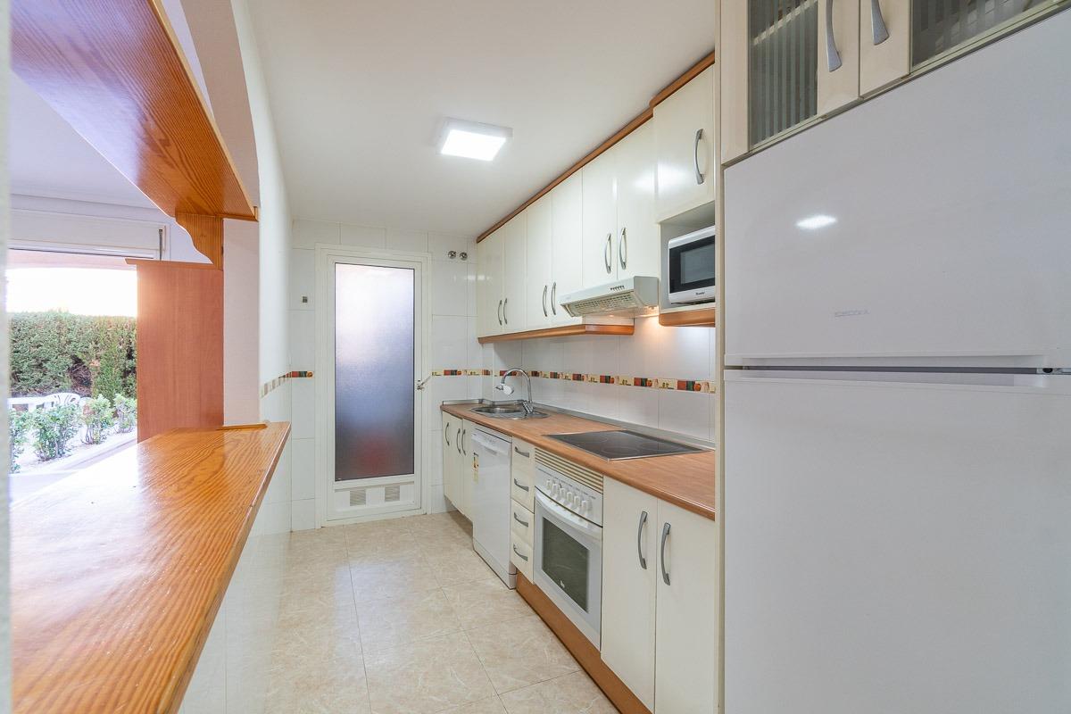 Ground floor apartment in Orihuela Costa, Playa Flamenca Norte area, with a constructed area of ​​78 m² and a 60 m² garden. The property is located 2,389 meters from the beach, and has two double bedrooms, two bathrooms, and is ready to move into. The kitchen is fully equipped, with wooden interior carpentry, north orientation, stoneware floors and aluminum exterior carpentry.