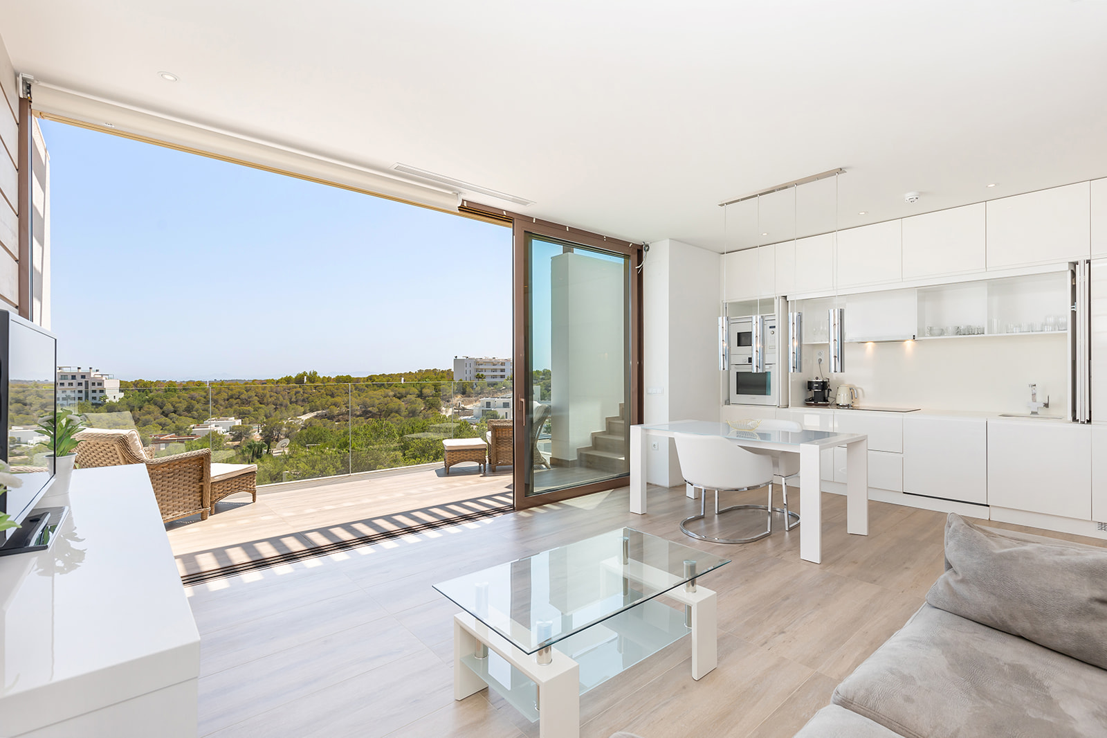 Luxury penthouse in Las Colinas Golf. This stunning top floor apartment offers a spacious living-dining room and open kitchen, fully equipped with appliances along with a terrace overlooking the communal pool and green areas. The property has two bright bedrooms and a private solarium with open kitchen. Included in the apartment comes a parking space and a private storage room in the basement.