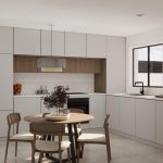 Fully equipped kitchens with integrated fridge, extractor hood, hob, oven, dishwasher, and washing machine