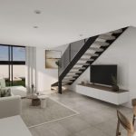 Each villa is designed with a contemporary layout over two floors, offering 3 bedrooms and 2 bathrooms. The first floor features an uncovered terrace, and there is an optional rooftop solarium available for an additional cost.