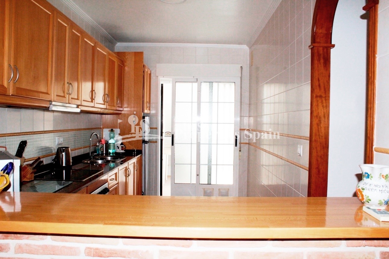 The property offers a bright and generous living/dining area, an open-plan fully equipped kitchen, and a 21 m² utility patio. The ground floor also features a double bedroom and a bathroom, while an open staircase leads to the first floor, which comprises two additional bedrooms, a bathroom, and a large sunny roof terrace, perfect for relaxing and enjoying the Mediterranean climate.