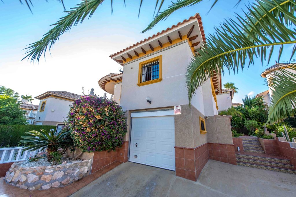 This spacious villa offers 3 bedrooms, 3 bathrooms, large living and dining area, kitchen, terrace and solarium. There is a garage, plenty of storage space and also utility room. The property is located on a large plot of 400m2 and has very well kept garden. It will be sold fully furnished and equipped.Villamartin is a fast-growing tourist destination, located on the southern Costa Blanca just west of Torrevieja, which many tourists choose for its proximity to three championship golf courses, Campoamor, Las Ramblas and Villamartin. It also has many sandy Blue Flag beaches just a few minutes' drive away at La Zenia, Cobo Rojg and Playa Flamenca. The Villamartin Plaza is surrounded by shops, cafés, bars, banks and restaurants, where the summer nightlife atmosphere buzzes with life.